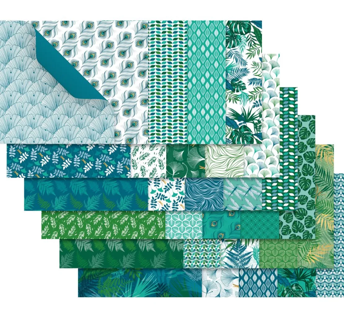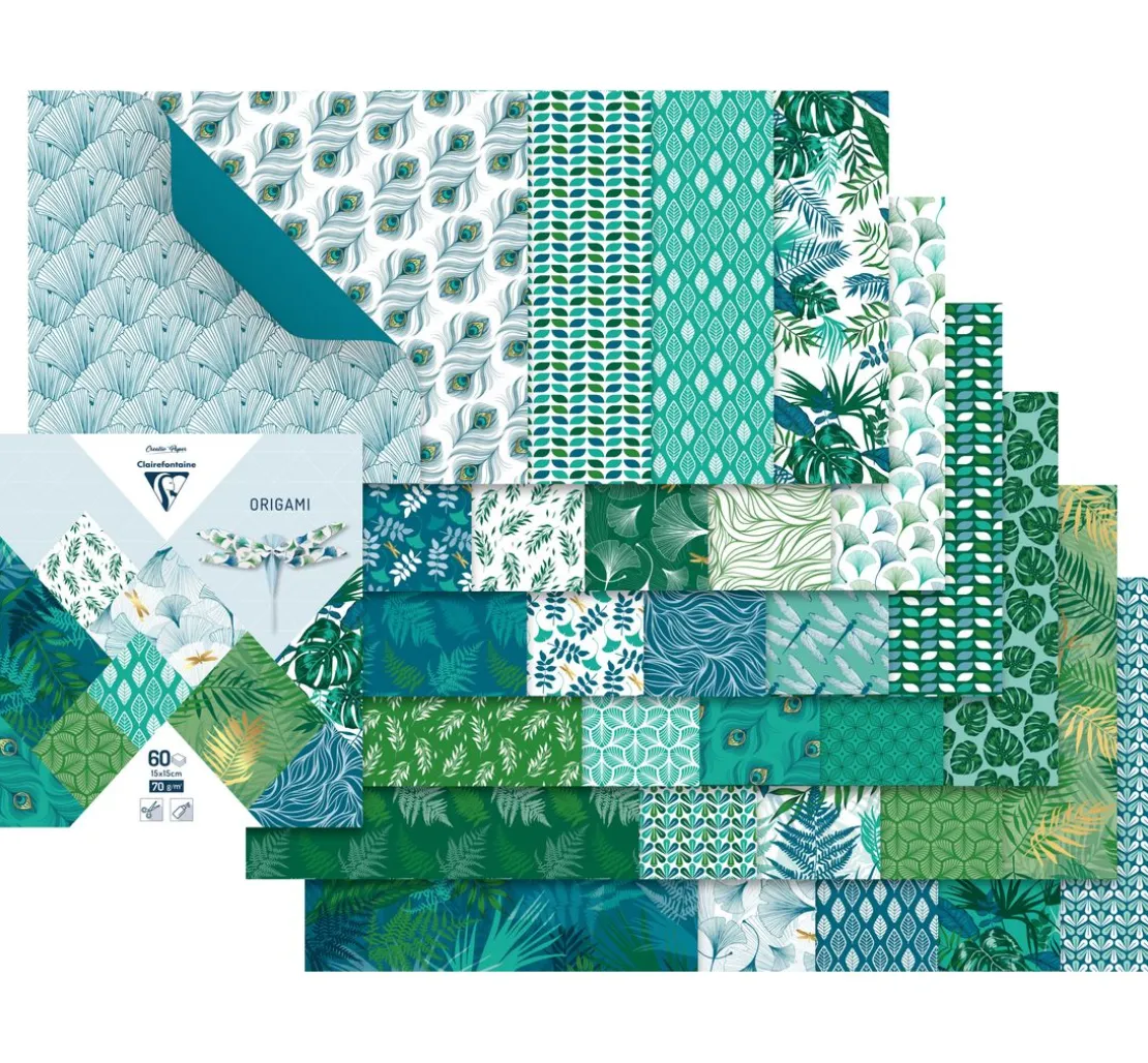 Mit den in grün gehaltenen Faltblättern macht das Origami falten so richtig viel Spaß! Die wundervollen Muster und Motive harmonieren super miteinander, dass sich ganz einzigartige Origami Figuren und Formen falten lassen.