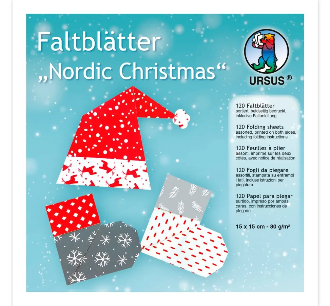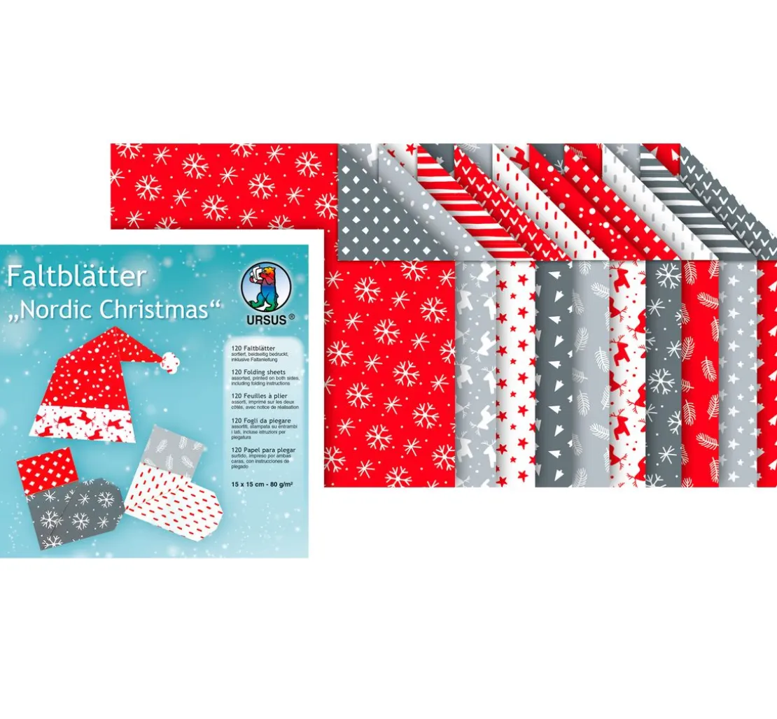 Diese Faltblätter „Nordic Christmas“ mit einem Format von ca. 15 x 15 cm laden zum Kreativ werden ein. Die 120 Blatt sind beidseitig mit verschiedenen weihnachtlichen Motiven bedruckt. Das Papiergewicht beträgt ca. 80 g/m².