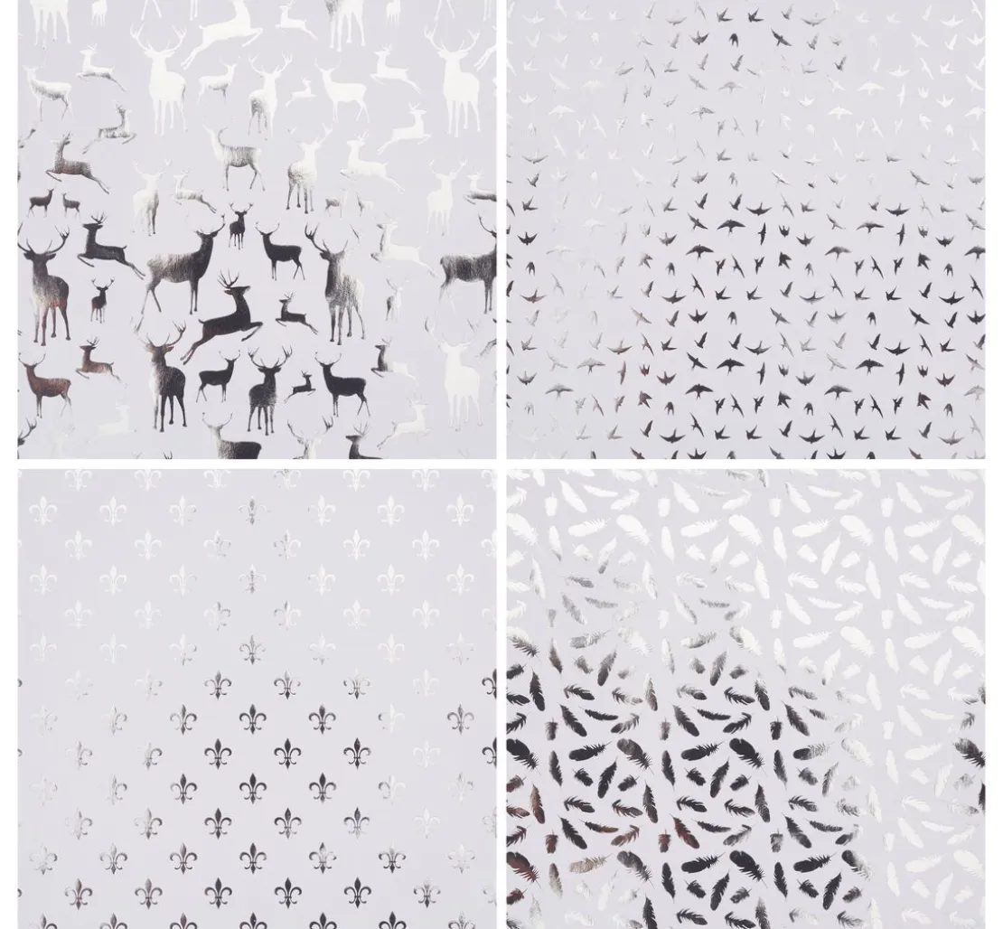 Edles Faltpapier „Silver X-Mas„. Das Papier hat die Maße 15 cm x 15 cm. Sie erhalten 32 Blatt mit 4 verschiedenen Designs à 8 Blatt, die Rückseite ist Silber. Die Grammatur beträgt 110 g/m².