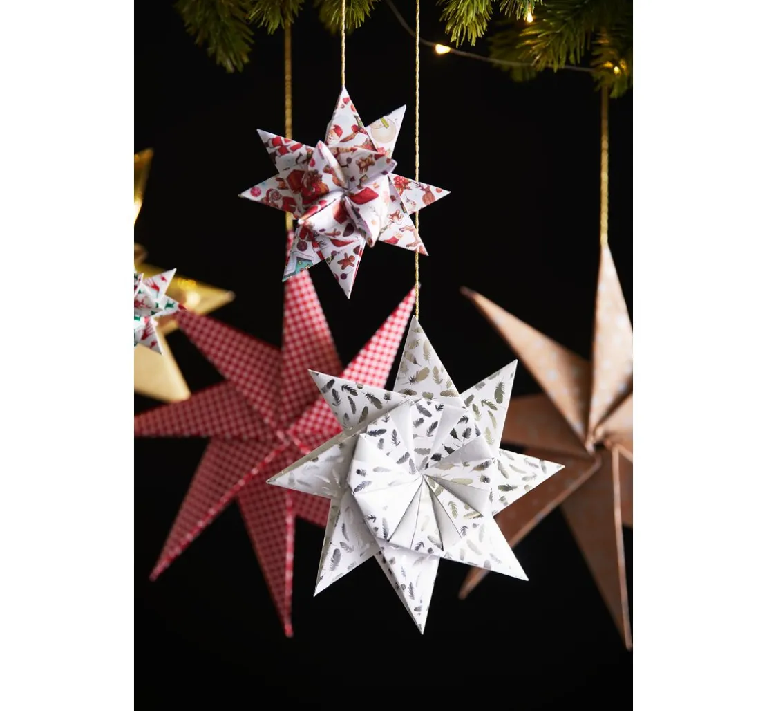 Die Faltpapiere sind alle mit einem silbernen Druck versehen und wirken daher sehr edel. Perfekt für Karten, Geschenkanhänger oder anderen Papierbasteleien. Durch die farbliche Abstimmung des Papiers sehen die fertigen Bastelarbeiten richtig toll aus. Auch hübsche Sterne lassen sich aus dem Silver X-Mas Papier fertigen, so dass eine tolle Dekoration entsteht.