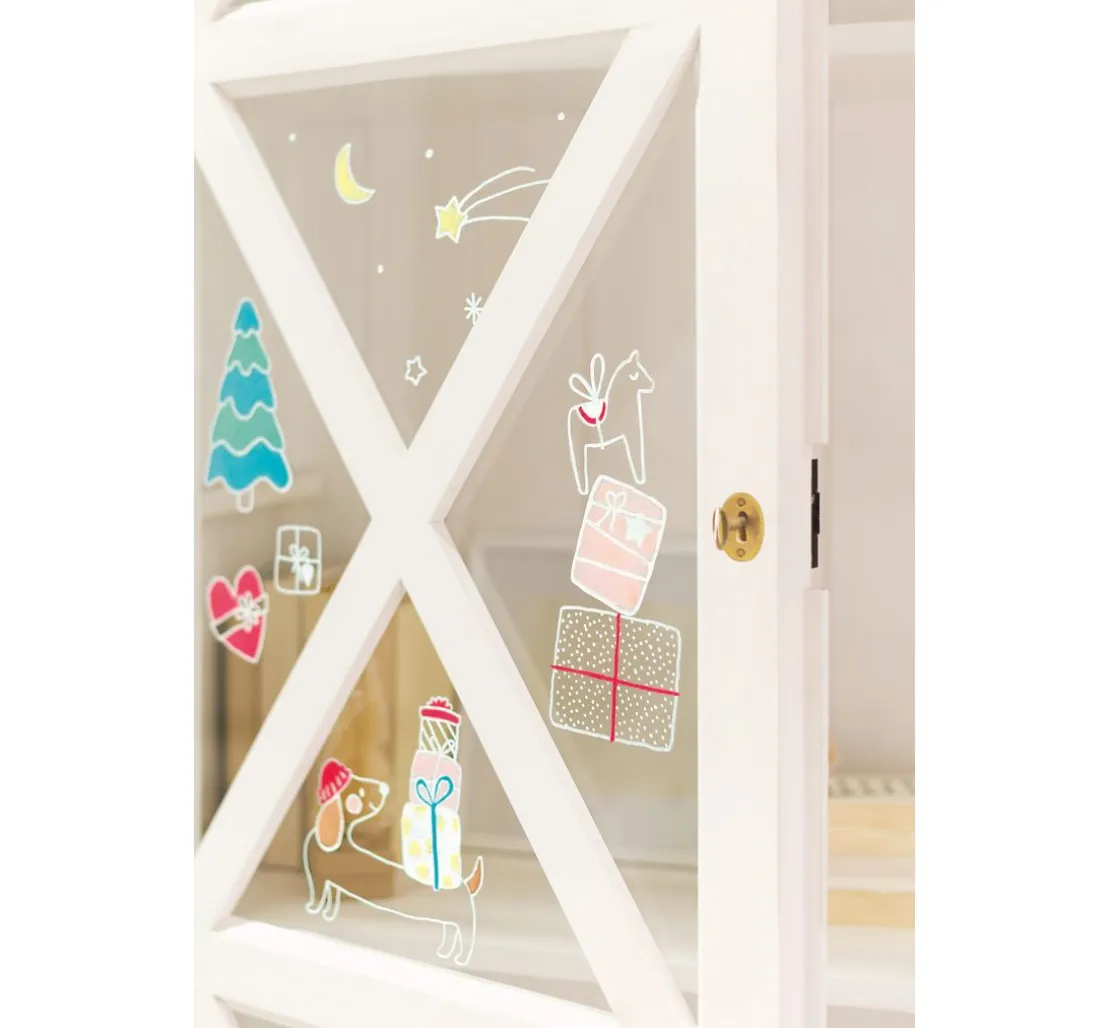 Dieses praktische Set Fensterbilder Vorlagen „Cosy Winter“ mit 8 Malvorlagen und einem Kreidemarker ist ideal für den Einstieg in die Fenster- und Glasmalerei.