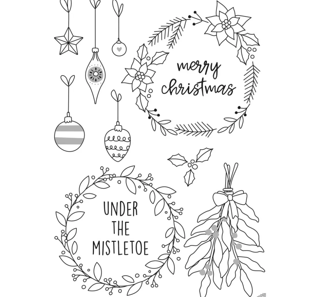 Die Vorlagen mit Motiven wie Kränzen, Tieren, Geschenken, Girlanden und vielem mehr können nach belieben kombiniert werden. Die verschiedenen Schriftzüge vervollständigen Ihre Kunstwerke.