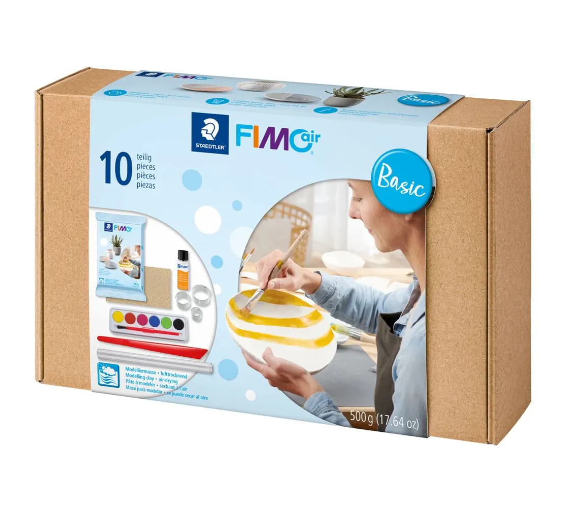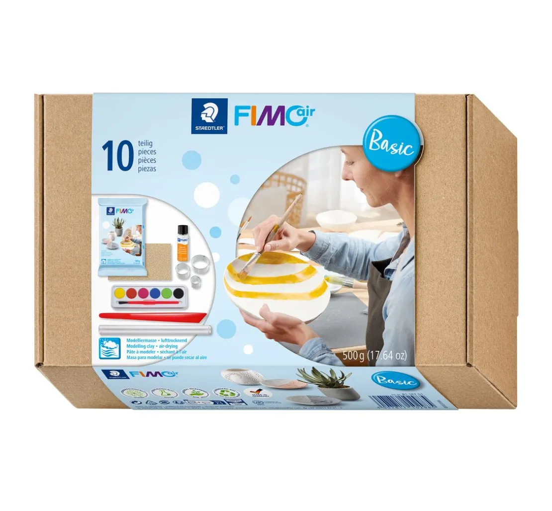 Tauche ein in die Welt der Kreativität mit dem FIMOair Set „Basic“! Dieses vielseitige Modellierset ist perfekt für Einsteiger und Fortgeschrittene. Mit der lufttrocknenden Modelliermasse kannst du spielend leicht einzigartige Kunstwerke schaffen, ganz ohne Brennofen. Die geschmeidige Konsistenz macht das Formen zum Vergnügen, wobei du direkt mit dem Modellieren starten kannst, denn die Masse ist sofort gebrauchsfertig und formstabil.