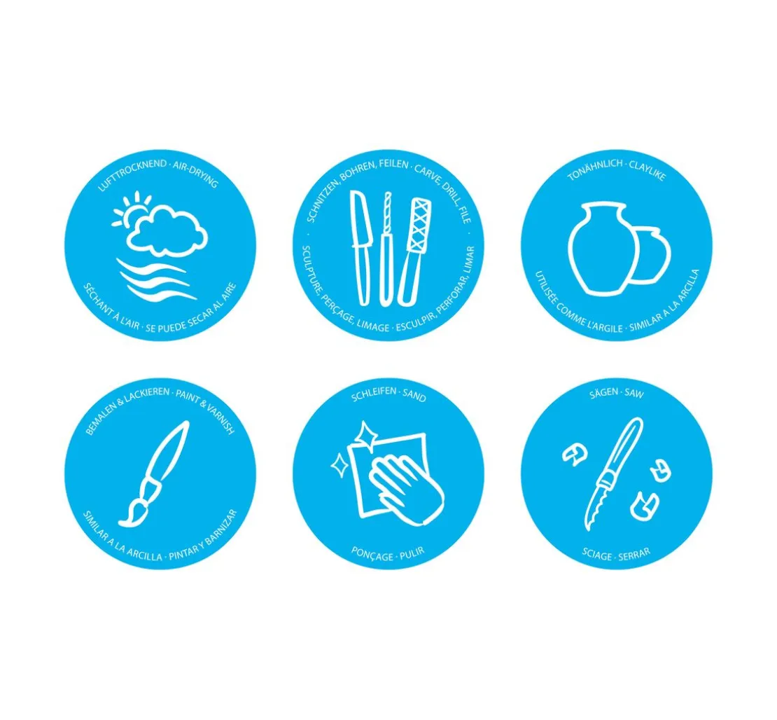So einfach funktioniert die FIMOair Modelliermasse: Forme die Masse nach deinen Wünschen, lasse sie an der Luft trocknen und sie wird hart und formstabil. Bei Bedarf kannst du deine Modelle auch nachbearbeiten und ihnen den letzten Schliff geben. Mit der Zeit härtet das Material vollständig aus und wird noch stabiler.