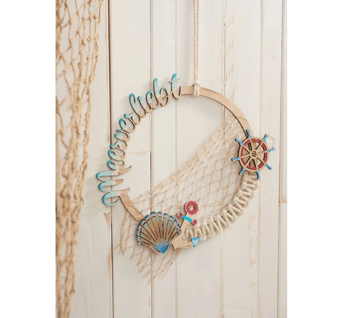 Das robuste Dekoband eignet sich für die Gestaltung von floristischen Dekorationen. Ob Kränze oder bepflanzte Schalen – das Netzband setzt maritime Akzente. Auch Tabletts und Windlichter lassen sich super dekorieren. Besonders gut zu einem maritimen Design passen Muscheln, Deko-Sand und Miniaturfiguren sowie Trockenblumen.