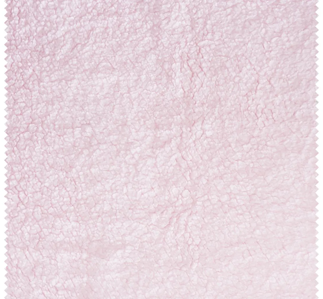 Ein flauschiger Fleece-Stoff „Lamm Rosé“ als Meterware mit einer Breite von ca. 150 cm. Das Stoffgewicht beträgt ca. 230 g/m² aus 100 % Polyester, waschbar bei 30 °C Feinwäsche.