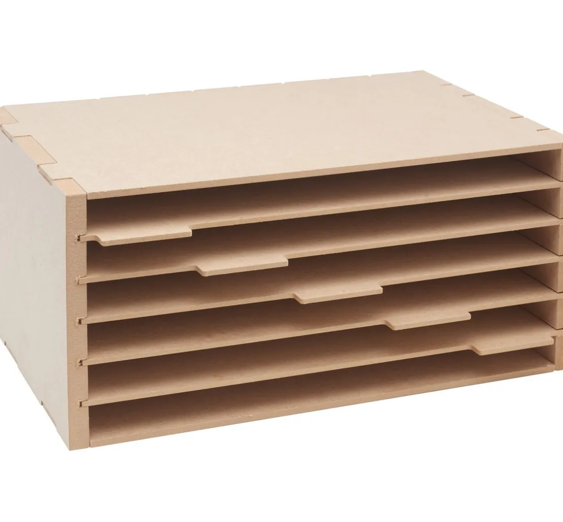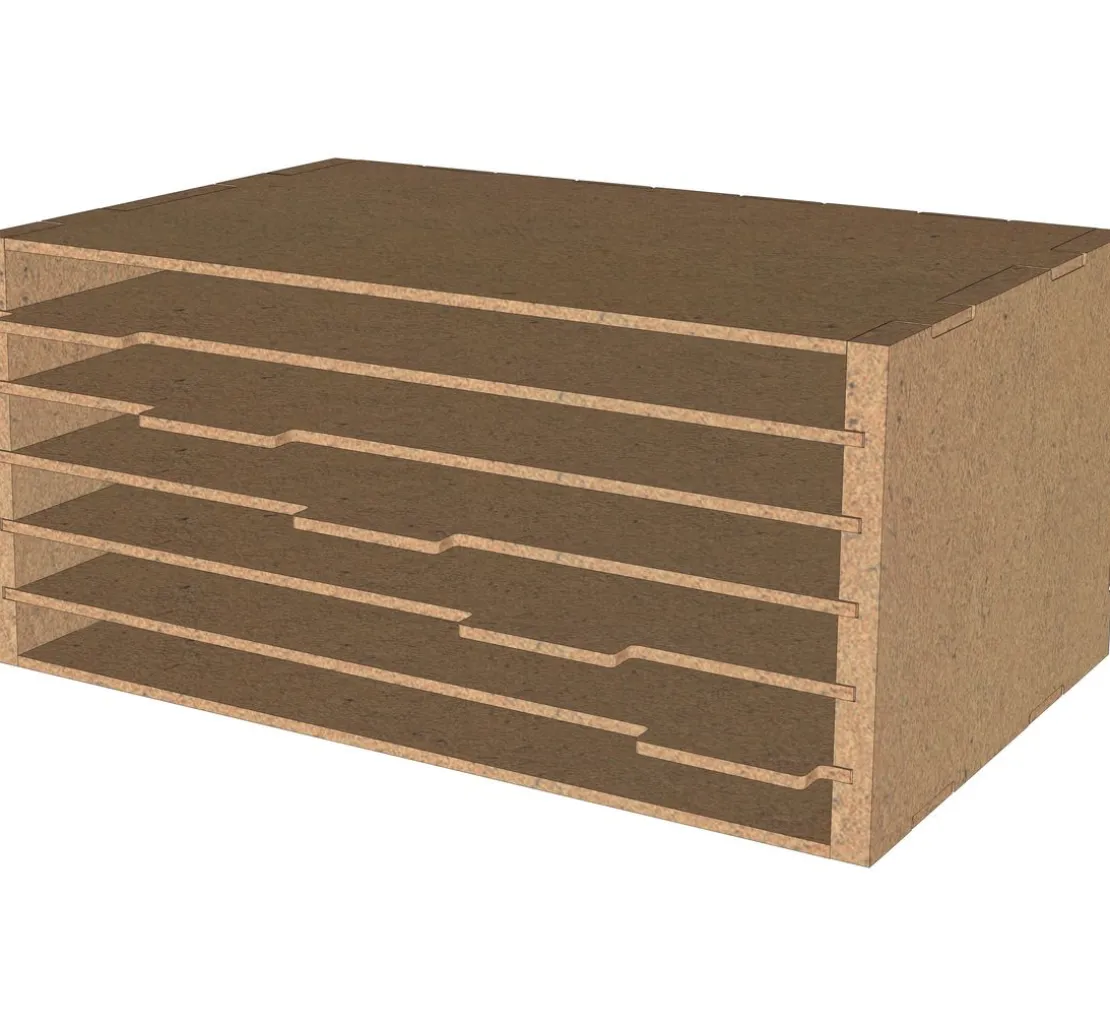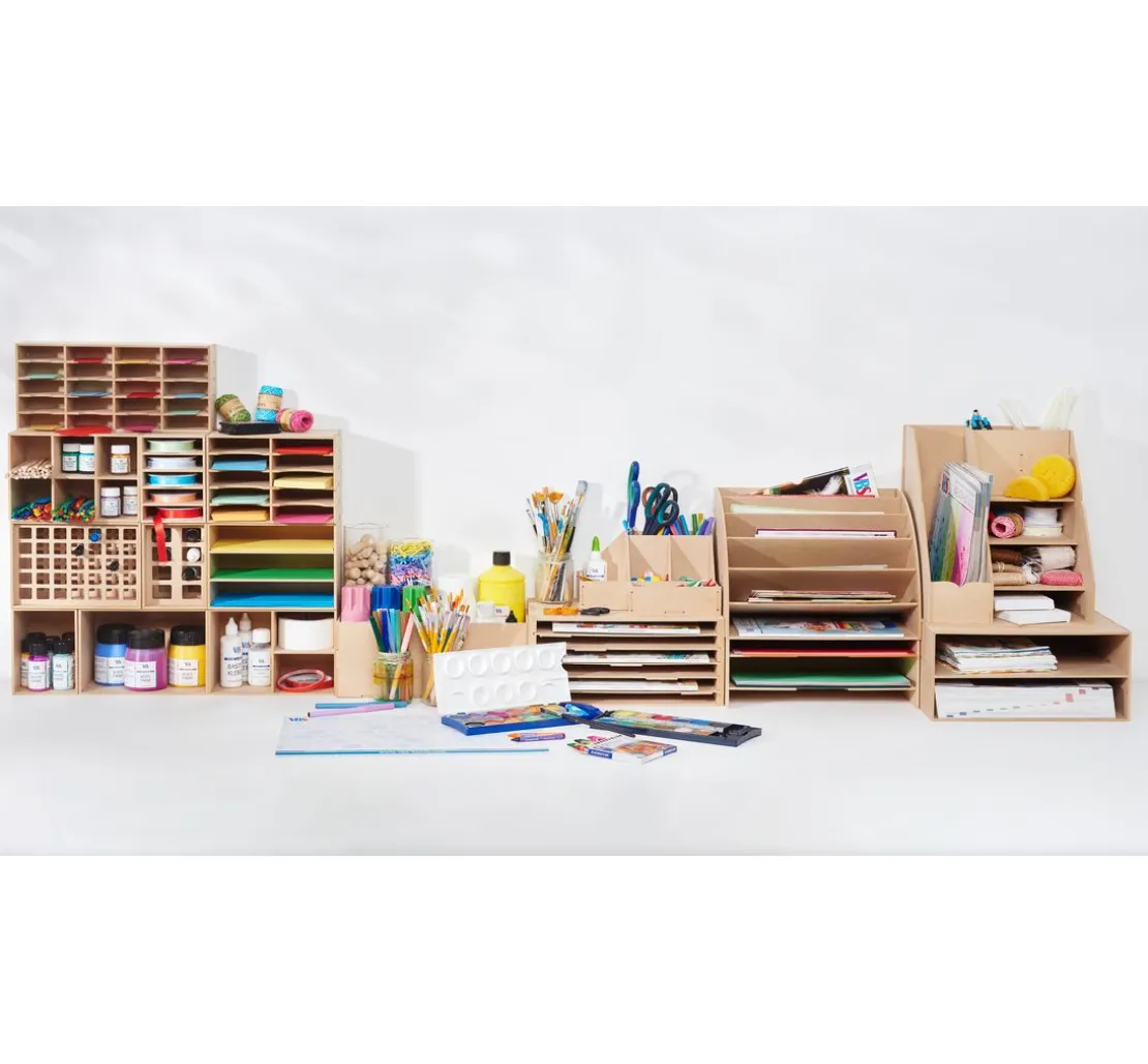 Der Bausatz des Organizers besteht aus 10 Teilen, die kinderleicht zusammengesteckt werden können. Eine Fixierung mit Bastelkleber wird empfohlen, um Stabilität und Langlebigkeit zu gewährleisten. Die Einlegeböden sind flexibel und können einzeln herausgezogen werden, um noch mehr Übersicht zu schaffen.