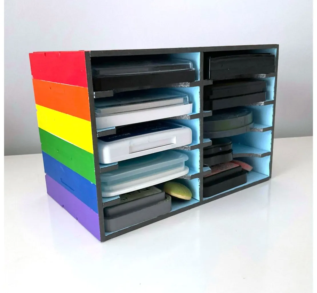 Das Besondere an der Flexio „Stempelkissen-Box“ ist, dass sie sich mit anderen Flexio Boxen zu einem individuellen Regalsystem kombinieren lässt. Egal ob du eine kleine oder große Sammlung an Stempelkissen hast, mit diesen flexiblen Boxen findest du die passende Lösung. Als echtes Multitalent eignet sich die Box auch als Organizer für andere Bastelmaterialien wie Pinsel, Scheren oder Stifte.