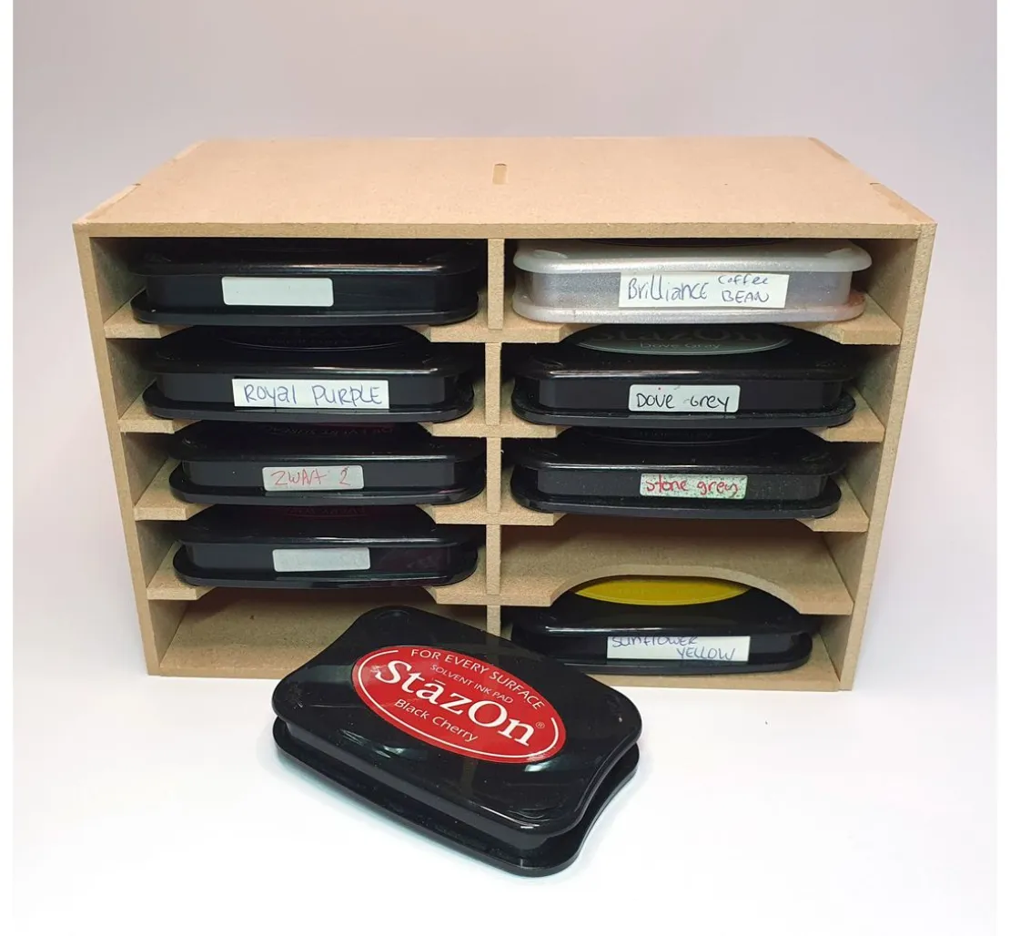 Für kreative Köpfe wie dich ist die Flexio „Stempelkissen-Box“ ein absolutes Must-Have! Der Bausatz besteht aus insgesamt 10 Teilen und bietet Platz für 10 Stempelkissen oder andere Bastelutensilien. Dabei ist die Box nicht nur praktisch, sondern auch ein echter Blickfang auf deinem Basteltisch. Maß pro Fach 10,4 x 12,7 x 2,4 cm.