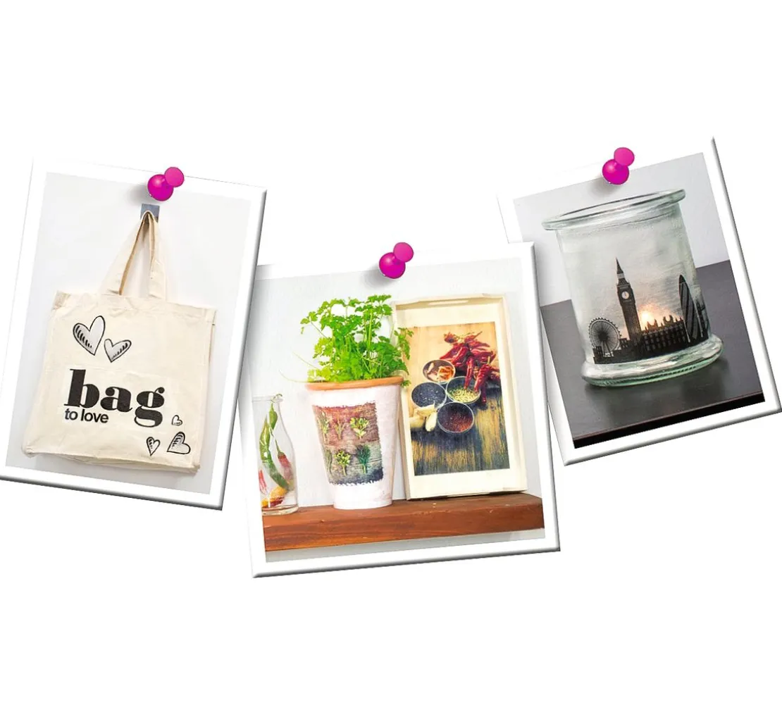 Mit diesem Komplettset können ganz einfach Fotoausdrucke (Laserdrucker) auf Untergründe übertragen werden.