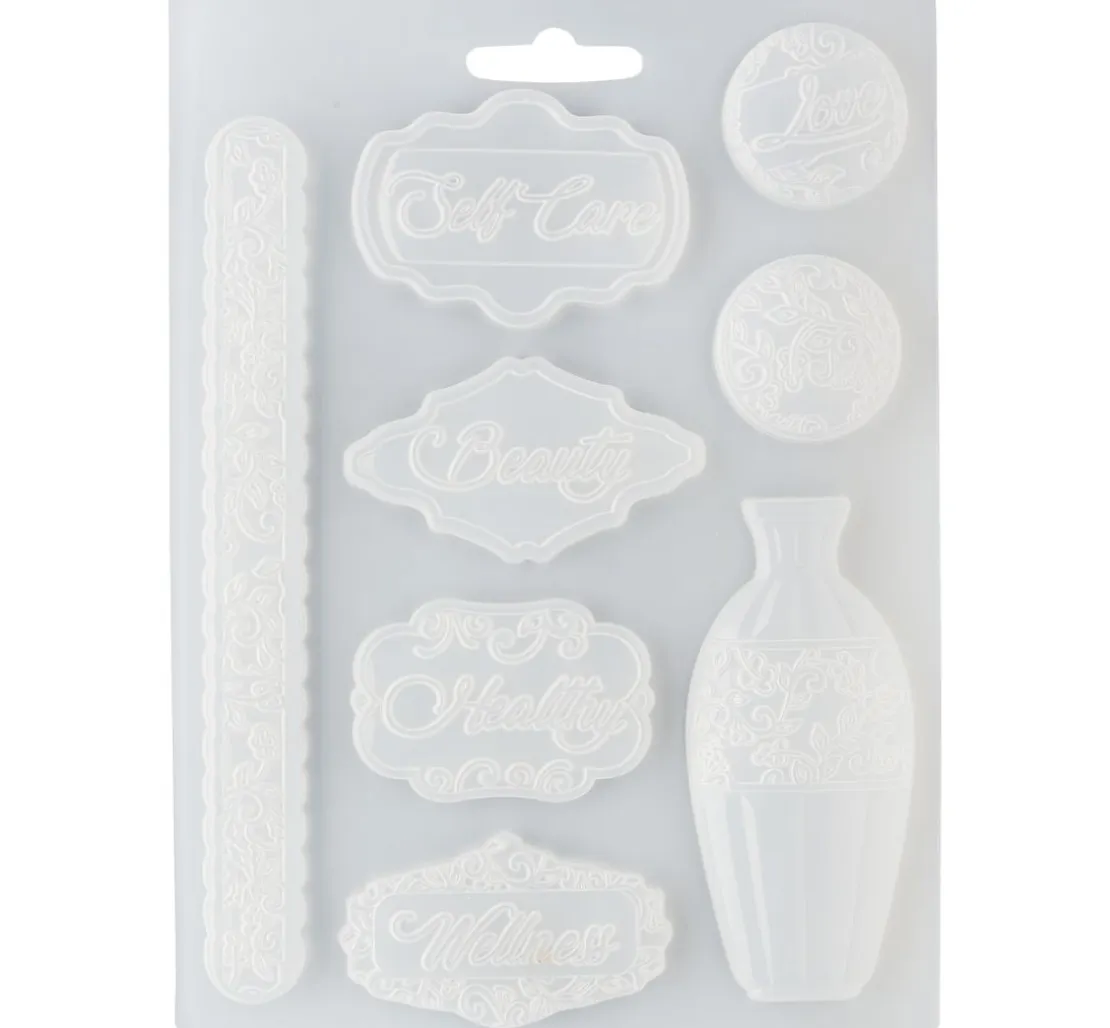 Die Motive der Gießform „Beauty“ lassen sich für vielseitige Bastelarbeiten verwenden. Die Form hat ein DIN A5 Format und eignet sich zum Ausgießen von 8 romantischen Motiven mit einer Größe von ca. 3,5 – 17,3 cm. Sie stammt aus der Kollektion Rose Parfum.