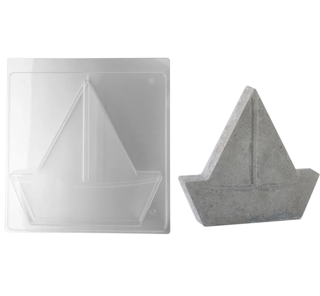 Segelboot, 28 x 26,5 cm, Tiefe 4 cm, Materialverbrauch: Beton max. 3000 g, Kreativ-Gießmasse max. 2000 g, Füllmenge 1450 ml