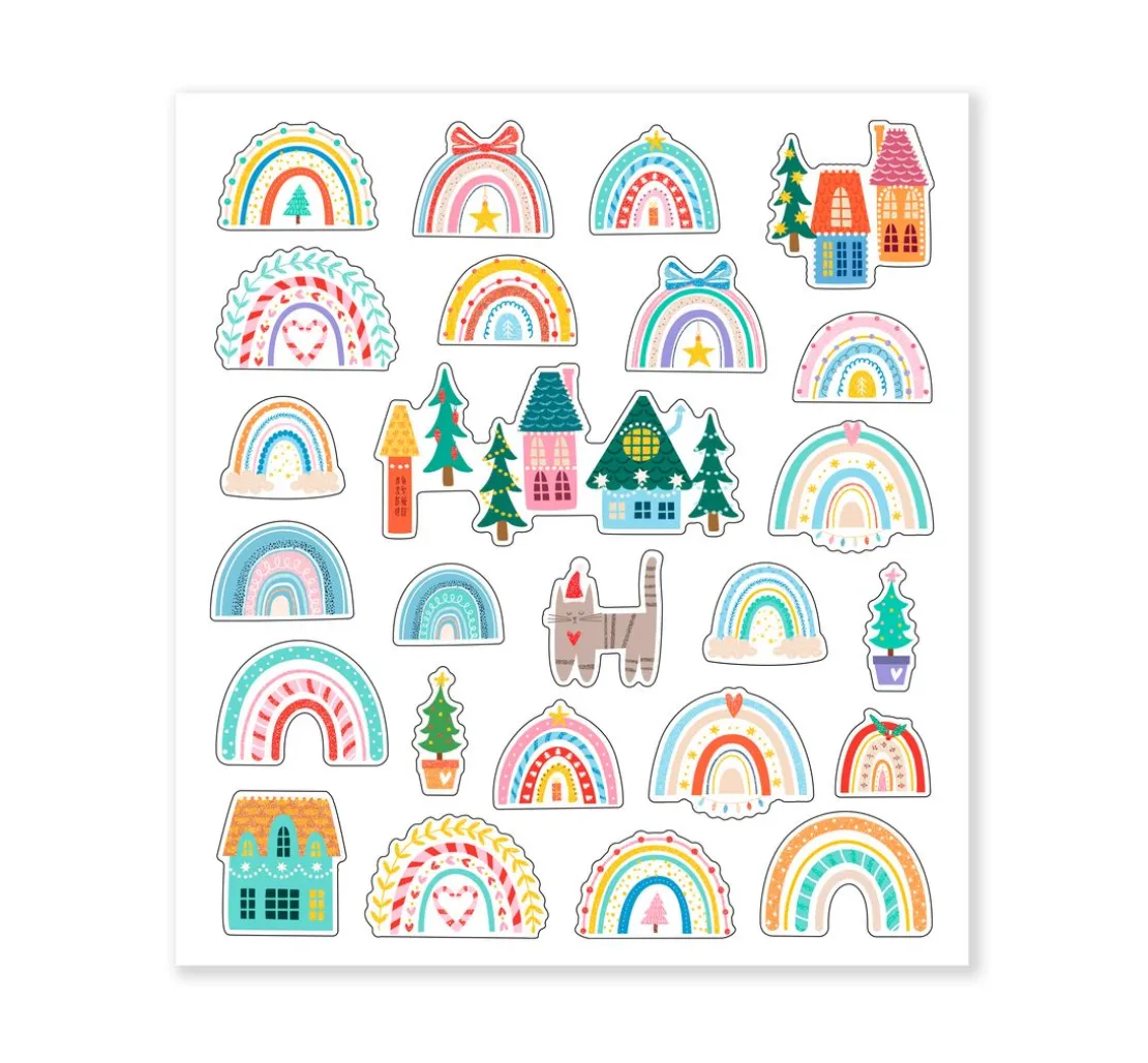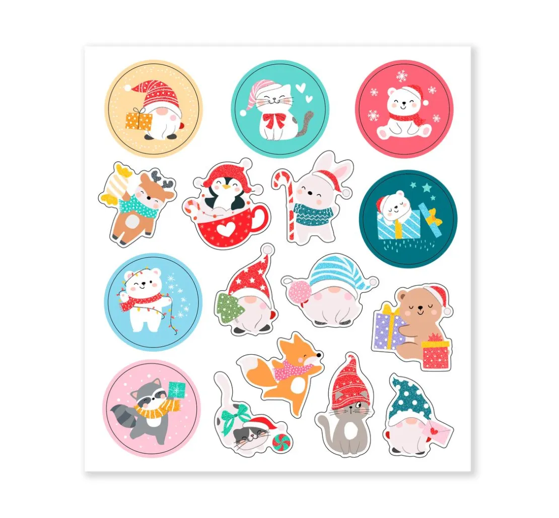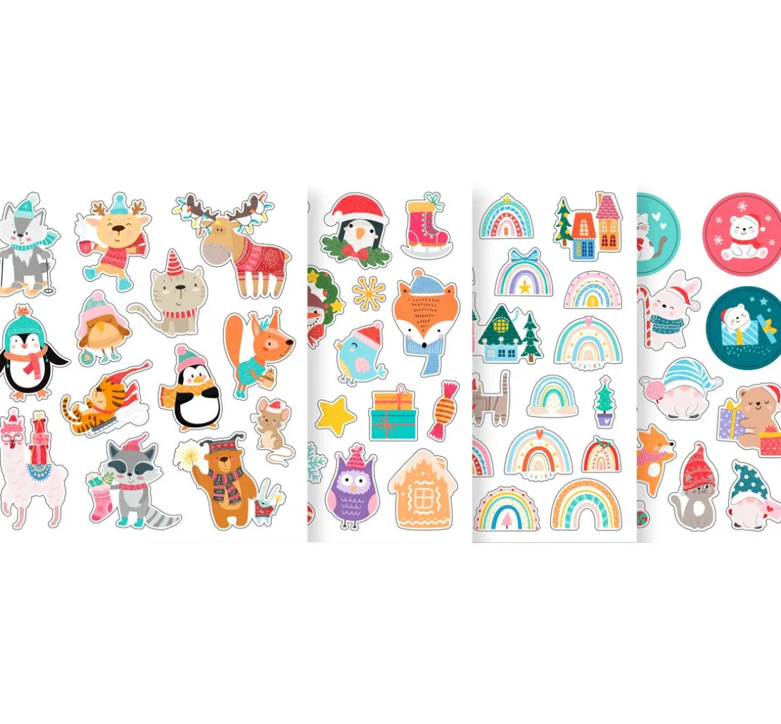 Das Glitzersticker-Set „Weihnachten“ ist ein wahrer Traum für alle Bastel- und DIY-Fans. Es enthält 4 Bögen mit verschiedenen Tieren und weihnachtlichen Motiven wie Tannen, Häusern, Regenbogen, Schneekugeln, Weihnachtsmännern, Pinguinen, Waschbären, Vögel, Katzen, Bären, Elchen, Lamas, Mäusen, Eichhörnchen und vielen weiteren.
