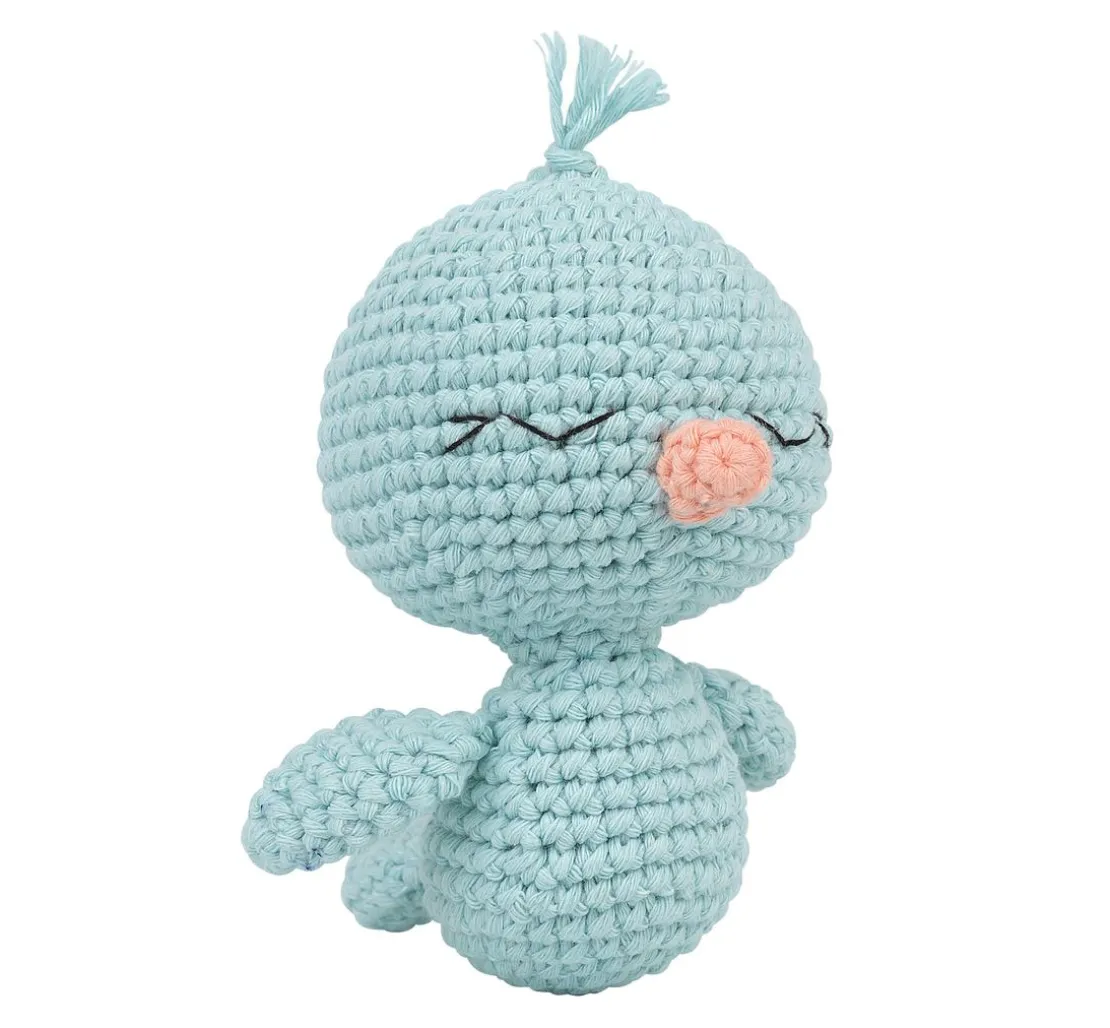 Häkelbegeisterte kommen mit diesem Set voll auf ihre Kosten. Das Häkeln von Kopf, Körper, Flügel, Schwanz und Schnabel wird Runde für Runde erklärt. Im Anschluss nur noch die einzelnen Häkelstücke mit Füllwatte stopfen, zusammennähen und fertig ist der niedliche Vogel.