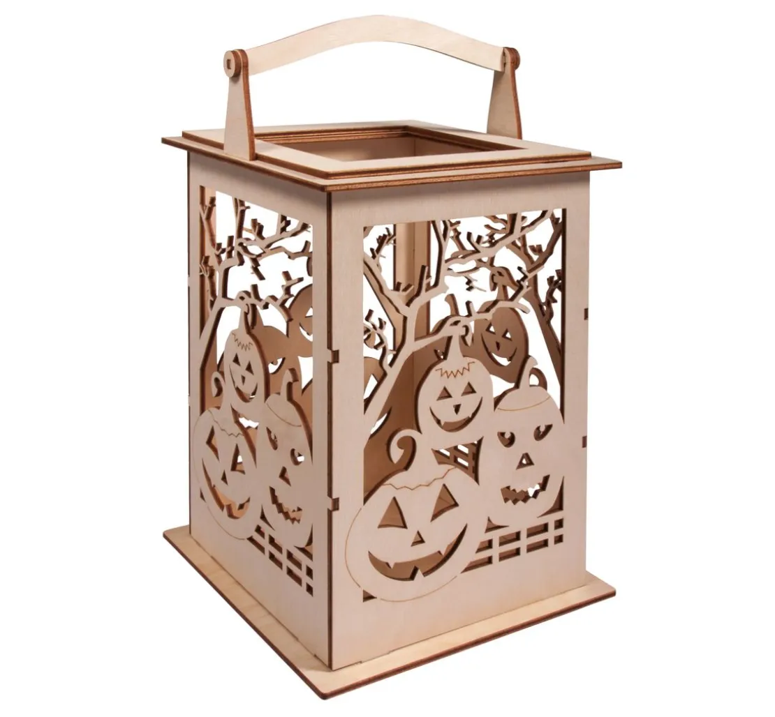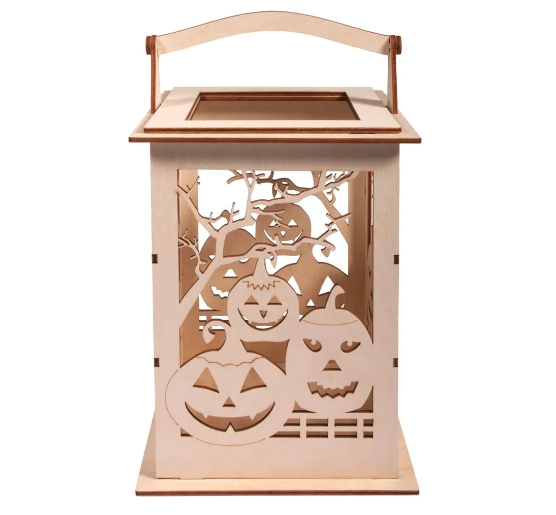Ein toller Bausatz Holz-Laterne „Halloween“ mit 15 Teilen aus hochwertigem Sperrholz. Die Größe der fertigen Laterne beträgt ca. 15,3 x 15,3 x 26,5 cm. Inklusive Anleitung.