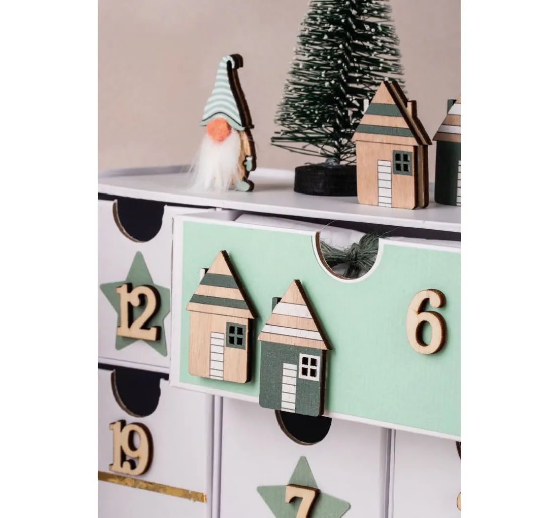 Mit den Holz Streuteilen „Haus-Mix“ mit Klebepunkt kannst du deinen Bastelprojekten eine individuelle und persönliche Note verleihen. Die 12 Streuteile sind in den Farben Blau und Grün bemalt und eignen sich perfekt zur Dekoration von Geschenken, Adventskalendern oder als Tischdeko. Sie sind 2,6 cm breit und 3,9 cm lang und bestehen aus hochwertigem Holz.