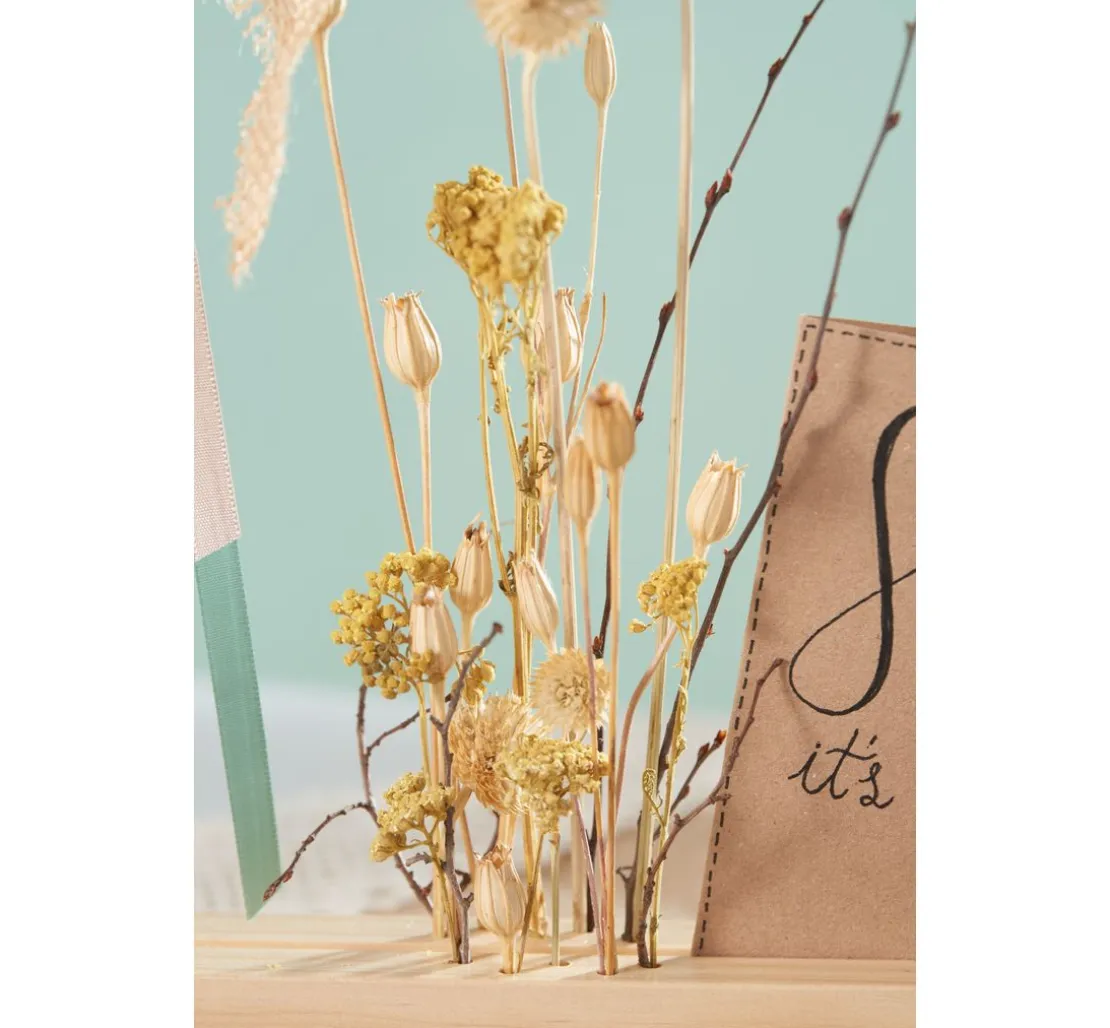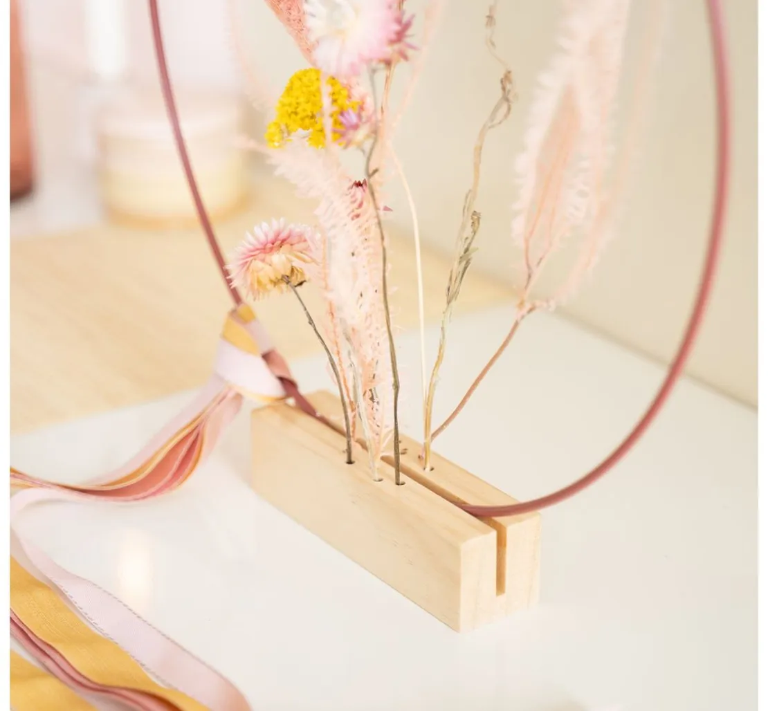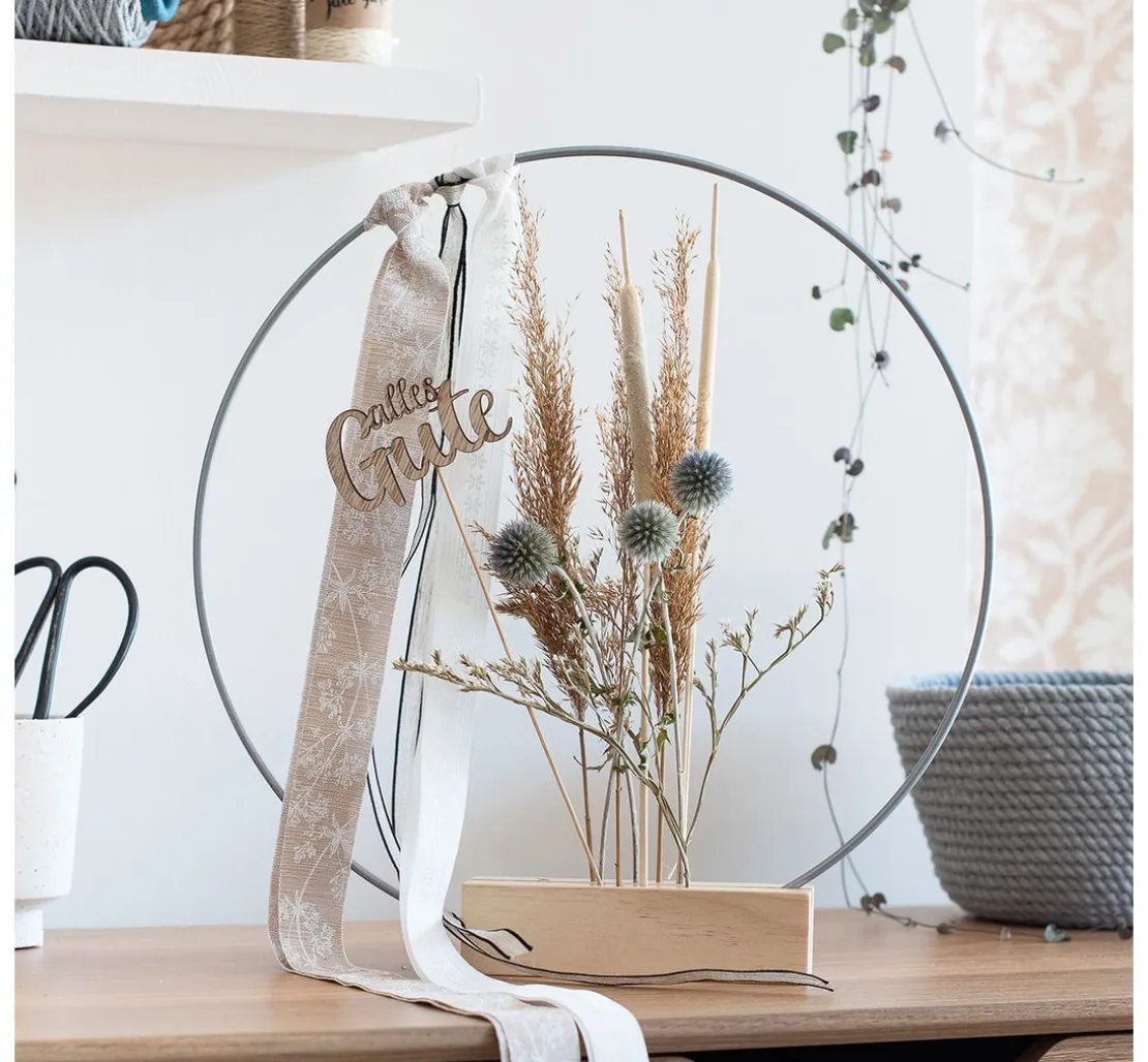 Extra-Tipp: Die getrockneten Gräser und Blumen nach Belieben austauschen und somit an die eigenen vier Wände immer neu anpassen. Außerdem kann der Holzständer wunderbar mit Bastelfarben und Brandmalerei individualisiert werden.