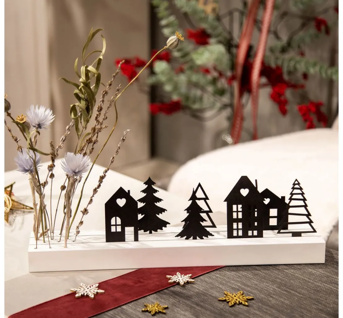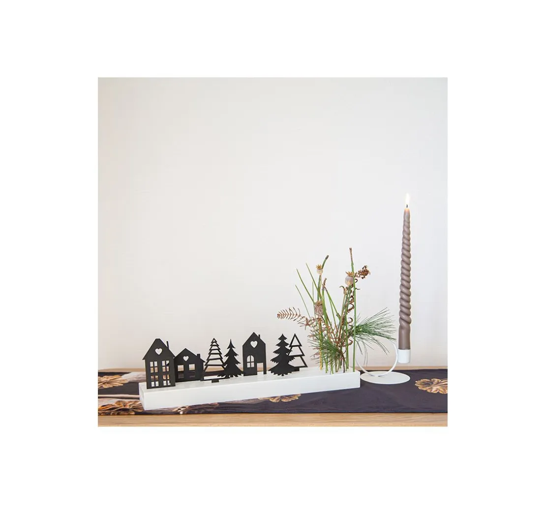 Dieser Holzständer für Trockenblumen und Karten ist eine vielseitige Tisch- und Wohndekoration. Der Holzständer aus MDF-Holz hat eine Größe von ca. 40,0 x 7,5 x 4,0 cm und ist mit 15 Löchern versehen. Diese haben einen Ø von ca. 4 mm mit einer Tiefe von ca. 2 cm. Die 2 Schlitze sind ca. 2 mm breit und haben eine Tiefe von ca. 3 cm.