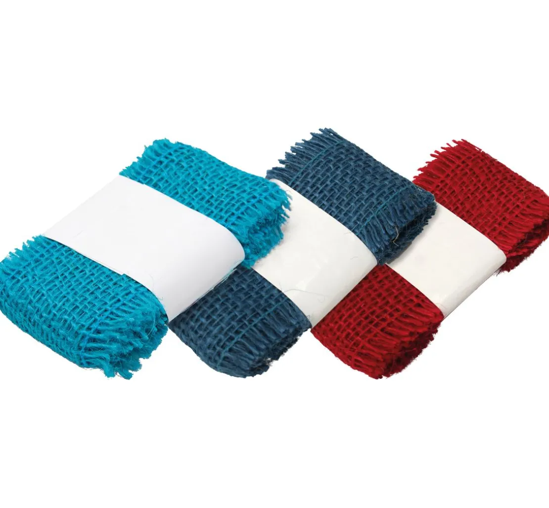 Das Juteband „Maritim“ besteht aus den 3 Farben Türkis, Dunkelblau und Rot mit einer Länge von jeweils ca. 2 m und einer Breite von ca. 5 cm. Das Material ist 94 % Jute und 6 % Baumwolle. Rustikale Dekorationen im maritimen Stil lassen sich wunderbar mit diesem Deko-Band anfertigen.
