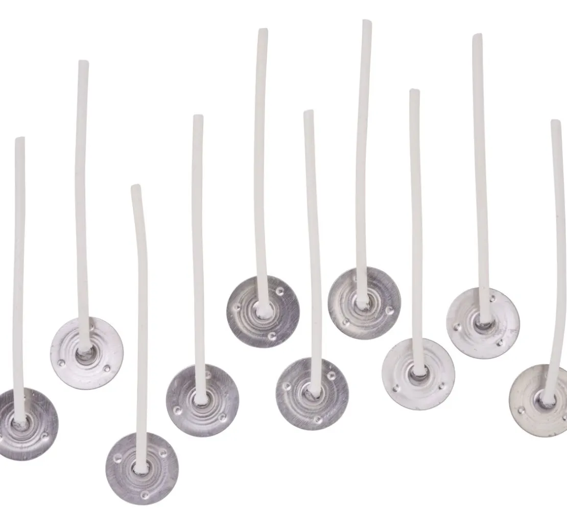 Die gewachsten Kerzendochte mit Metallfuß sind auf die Verwendung für Votivkerzen abgestimmt. Die Dochte haben eine Länge von ca. 6 cm und das Metallplättchen hat einen Ø von ca. 1,5 cm.