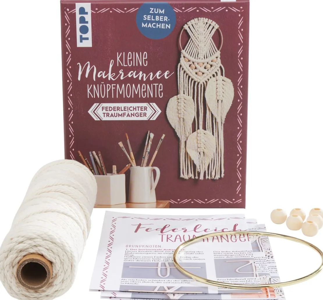 Ideal für zwischendurch! Das Set Kleine Knüpfmomente: Makramee-Knüpf-Set „Federleichter Traumfänger“ ermöglicht das Umsetzen eines kleinen DIY-Projektes. Es ist das komplette Material sowie eine detaillierte Anleitung mit Schritt-für-Schritt-Fotos enthalten. Von der Autorin Carina Walther.