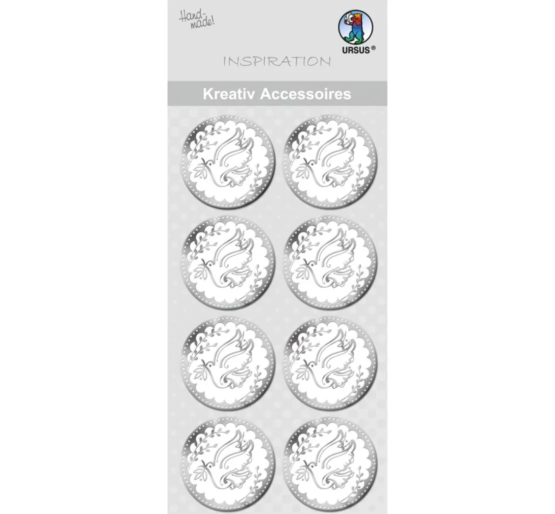 8 hochwertig geprägte und mit goldener Farbe bedruckte Papier-Accessoires mit Motiv Taube, ideal zum Gestalten von Karten, Dekorationen und für Geschenkverpackungen zur Hochzeit, für Kommunion und Konfirmation oder für die Taufe.