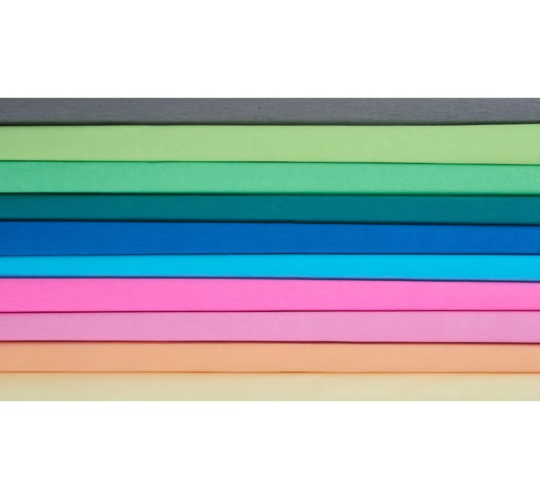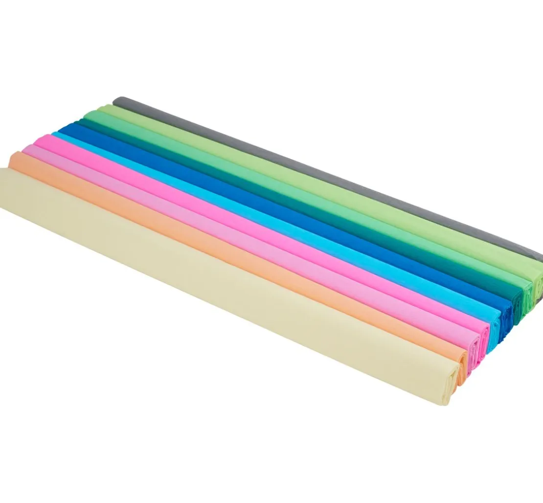 Ein wundervolles Krepppapier-Sortiment „Trend“ mit 10 Rollen buntem Krepppapier. Das Krepppapier hat eine Breite von ca. 50 cm mit einer Länge von ca. 200 cm und einem Papiergewicht von ca. 31 g/m².
