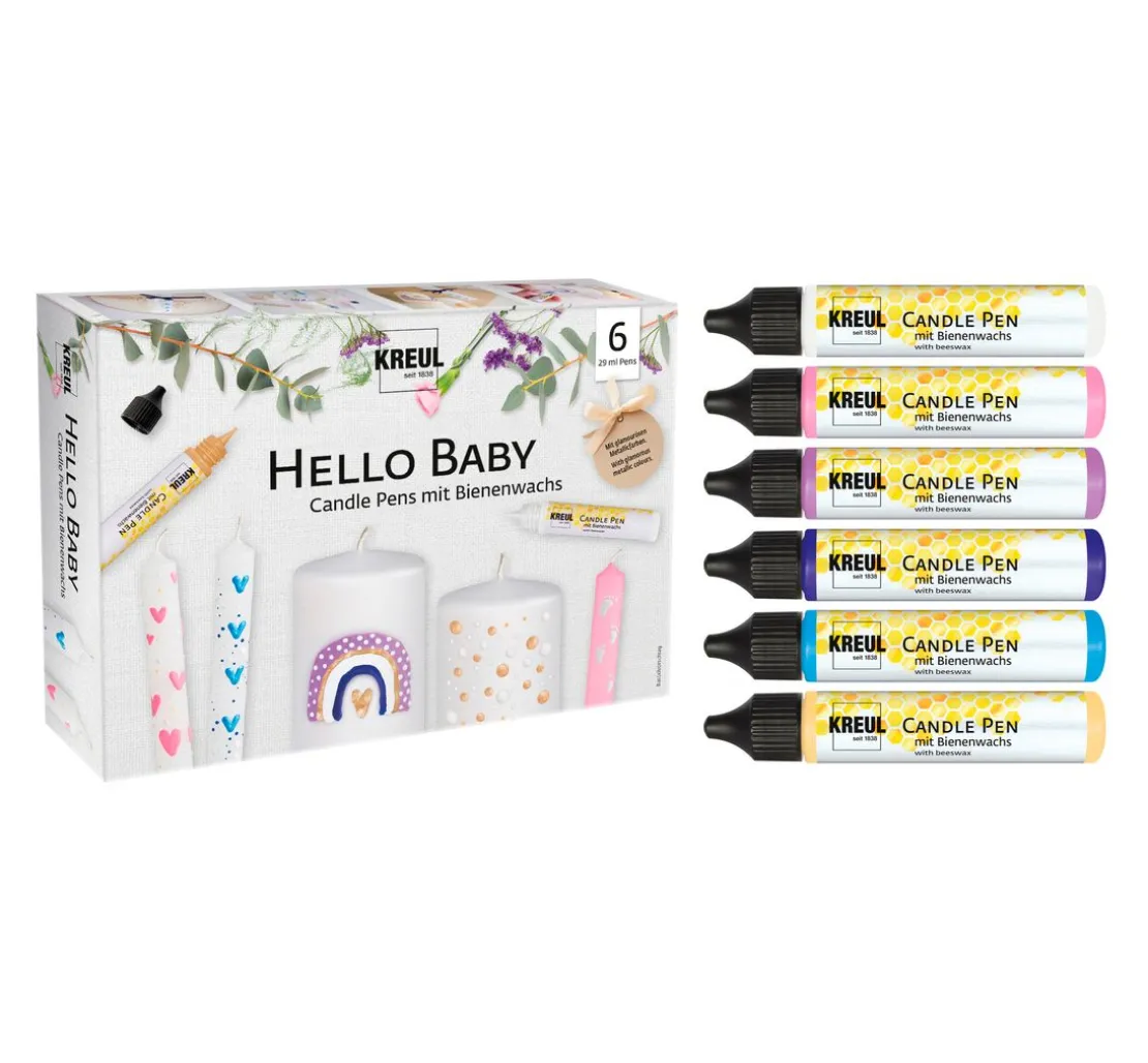 Verleihe deinen Kerzen eine persönliche Note und bestelle jetzt das KREUL Candle Pen „Hello Baby“ 6er-Set.