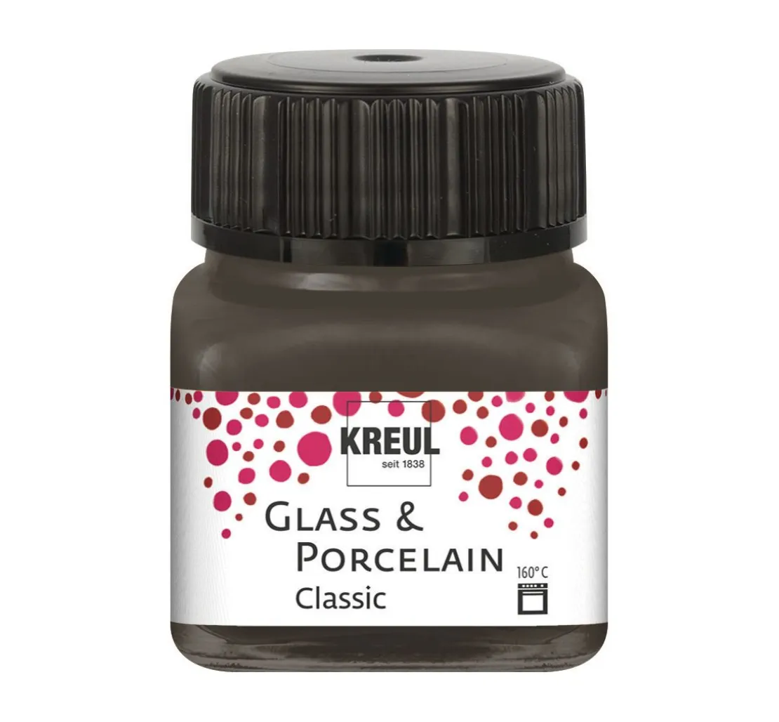 Verarbeitung: Die Farbe wird mit einem weichen Haarpinsel aufgetragen. Zum Verdünnen den KREUL Glass & Porcelain „Farbverdünner“ verwenden, damit die Haftkraft nach dem Einbrennen erhalten bleibt.