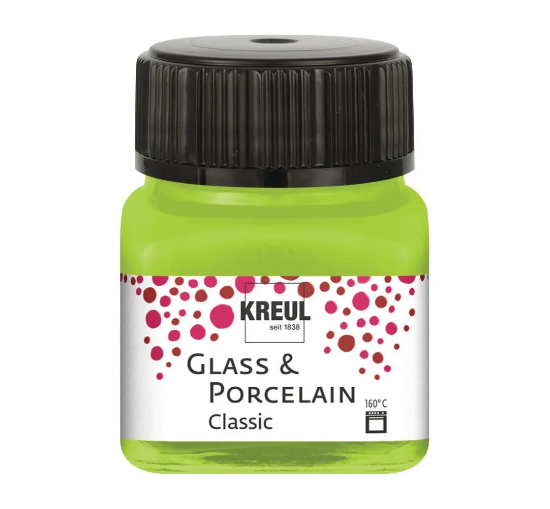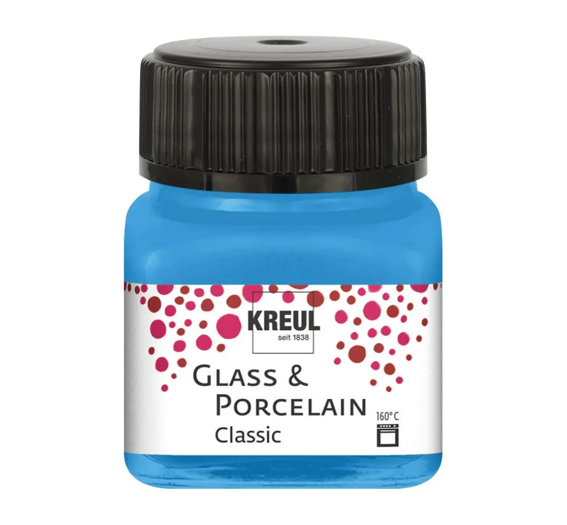 Die KREUL Glass & Porcelain „Classic„ Farbe besteht zu mindestens 60 % aus nachhaltigen Rohstoffen natürlichen Ursprungs und ist auf Wasserbasis hergestellt. Die Farbe ist gut deckend und trocknet glänzend-glatt auf. Die verschiedenen Farben lassen sich toll kombinieren und mit dem Kreul Glass & Porcelain „Farbverdünner„ beliebig verdünnen. So entstehen ganz individuelle Aquarell-Effekte und einzigartige Gegenstände.