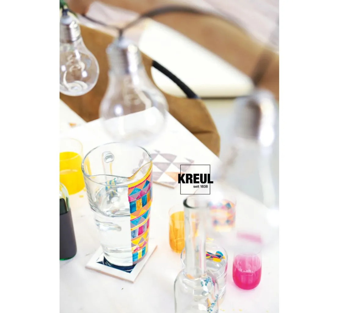 Die KREUL Glass & Porcelain „Clear„ Farbe ist aber auch für nicht dauerhaften Halt geeignet, denn solange die Farbe nicht eingebrannt ist, kann die Bemalung mit Wasser einfach wieder abgenommen werden. So gestalten Sie temporäre Designs auf Acrylglas, Spiegeln und vielen Kunststoffen, die wie echtes farbiges Glas wirken.