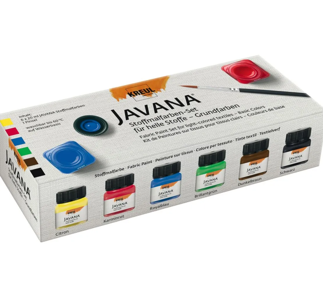 Mit dem tollen Stoffmal-Set von Javana erhalten Sie jetzt 6 Stoffmalfarben in den beliebten Grundtönen sowie einen Pinsel zu einem attraktiven Set-Preis.