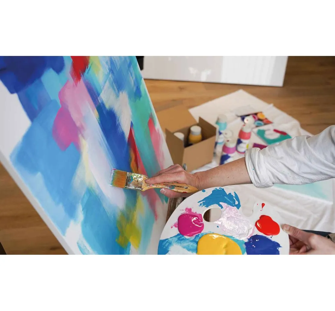 Ideal für kreative Projekte auf Leinwand, Papier oder sogar Metall, bietet dieses Set unendliche Möglichkeiten. Mische die Farben, um strahlendes Hellgrün oder mystisches Violett zu kreieren. Füge Titanweiß hinzu, um helle Nuancen zu erzeugen. Die Farben sind untereinander mischbar, wasserverdünnbar und trocknen schnell, was sie vielseitig für Innen- und Außenprojekte macht.