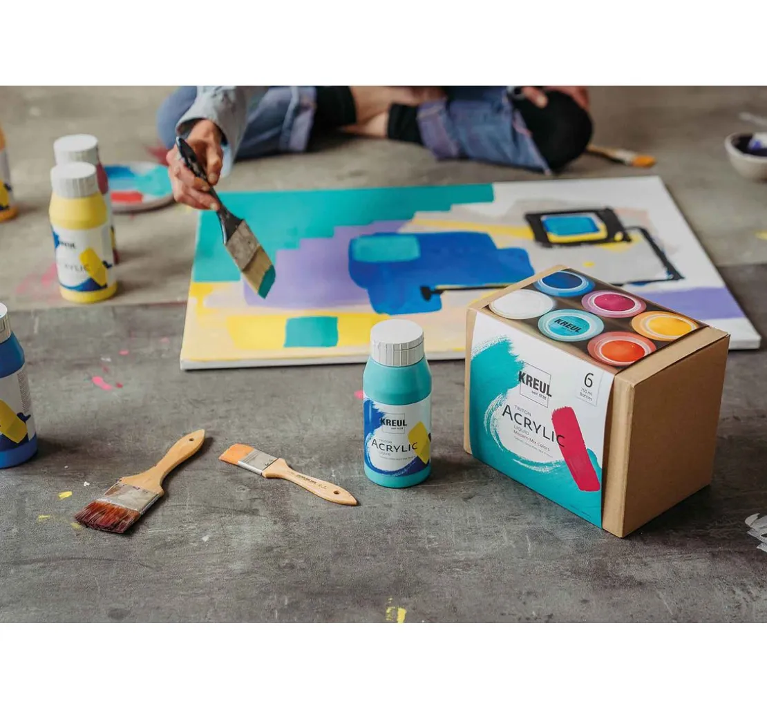 Entdecke die Welt der Farben mit dem KREUL Triton Acrylic Liquid Set „Modern Mix Colors“. Tauche ein in eine Palette, die zu ausdrucksstarken Kunstwerken inspiriert. Mit einem harmonischen Mix aus warmen und kalten Tönen kannst du leuchtende Akzente setzen. Die flüssige Konsistenz ermöglicht einen schnellen Farbauftrag auf großen Flächen, während das tiefmatte Finish für eine gleichmäßige Optik sorgt.