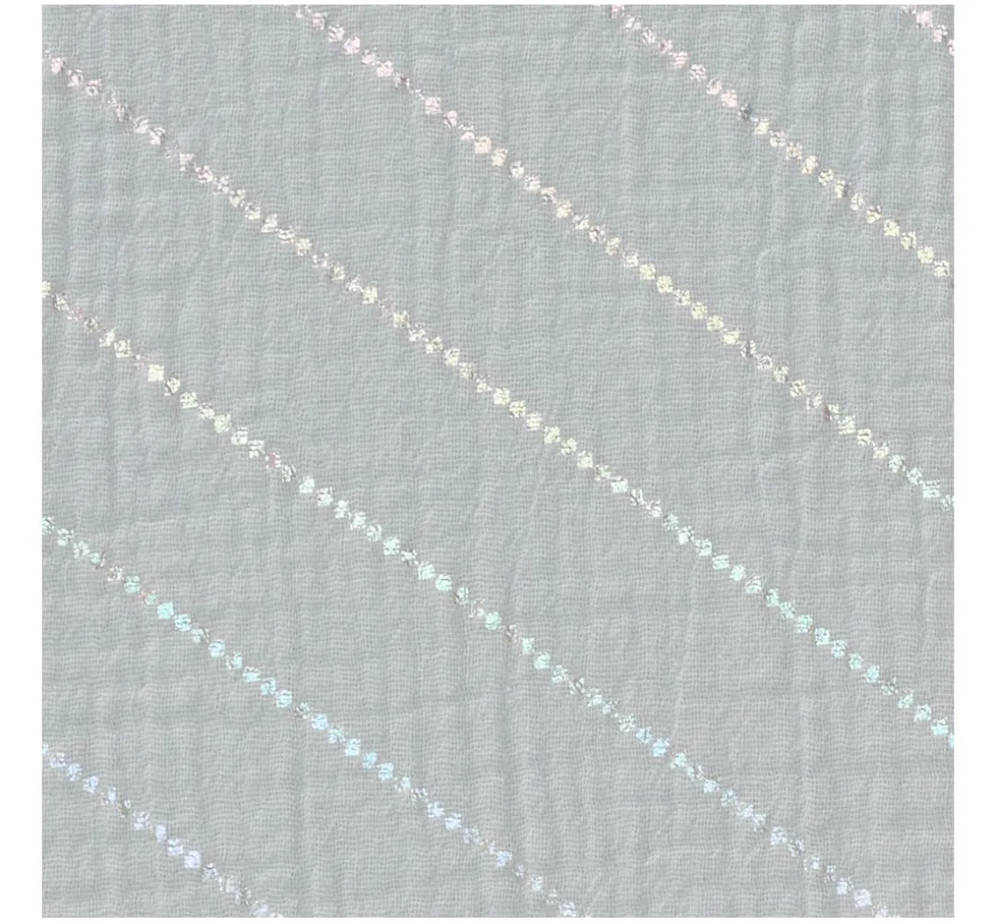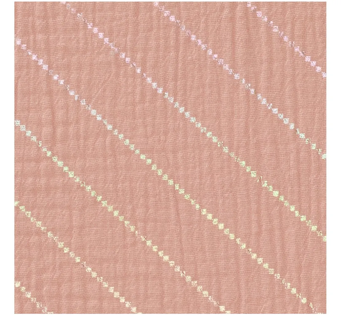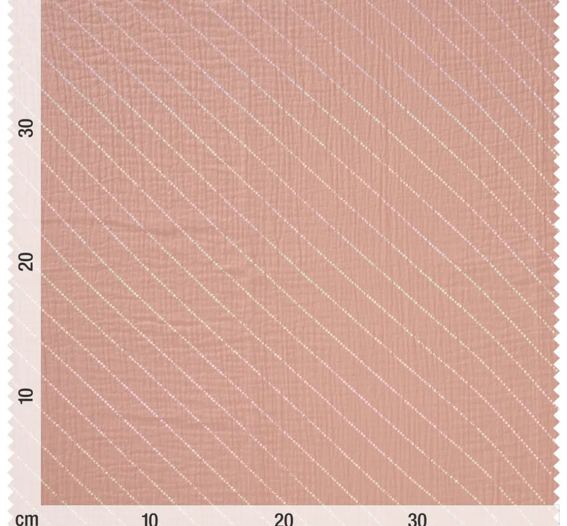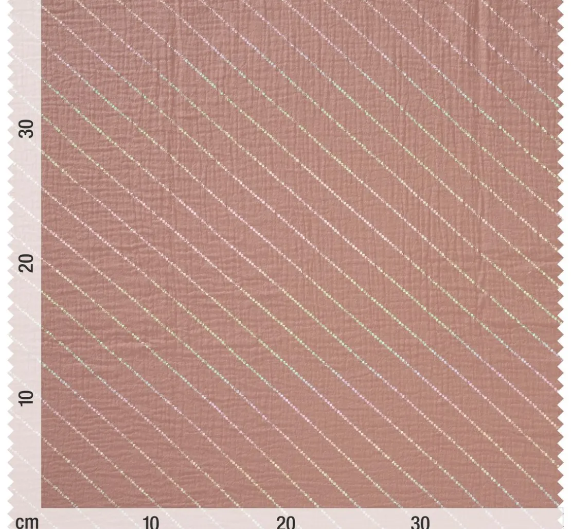Du suchst nach einem Stoff, der deine Nähprojekte zu etwas Besonderem macht? Dann ist der Krinkel-Musselin Baumwoll-Stoff mit Hot-Foil Effekt „Streifen“ genau das Richtige für dich! Der feine Streifen-Effekt mit Hot-Foil Veredelung verleiht deinen Kreationen einen besonderen Look. Der Stoff ist aus 100 % Baumwolle gefertigt und überzeugt durch seine Faltenoptik – daher auch der Name. Die Streifen liegen ca. 2 cm auseinander und haben eine Breite von ca. 2 mm.