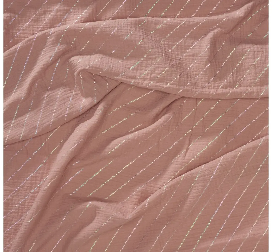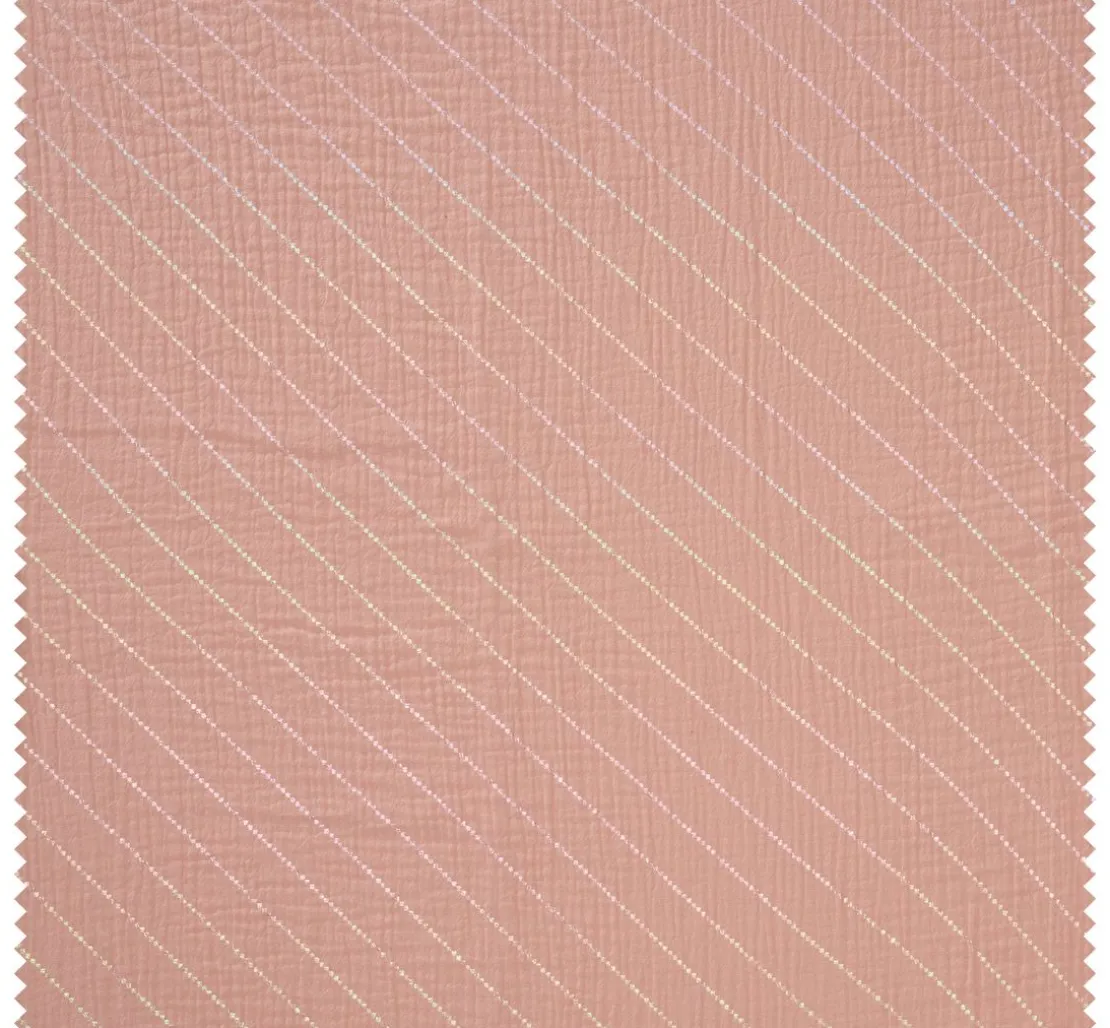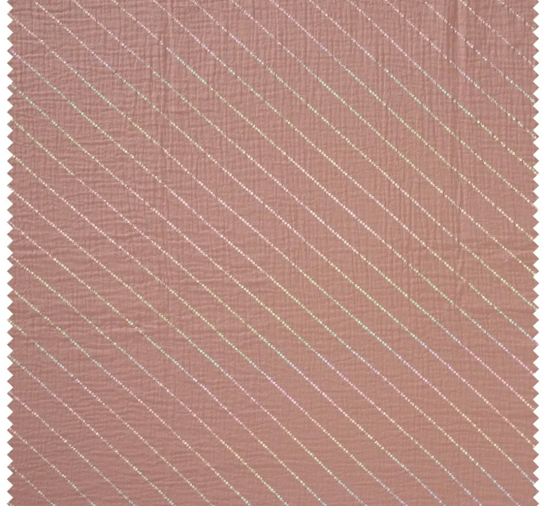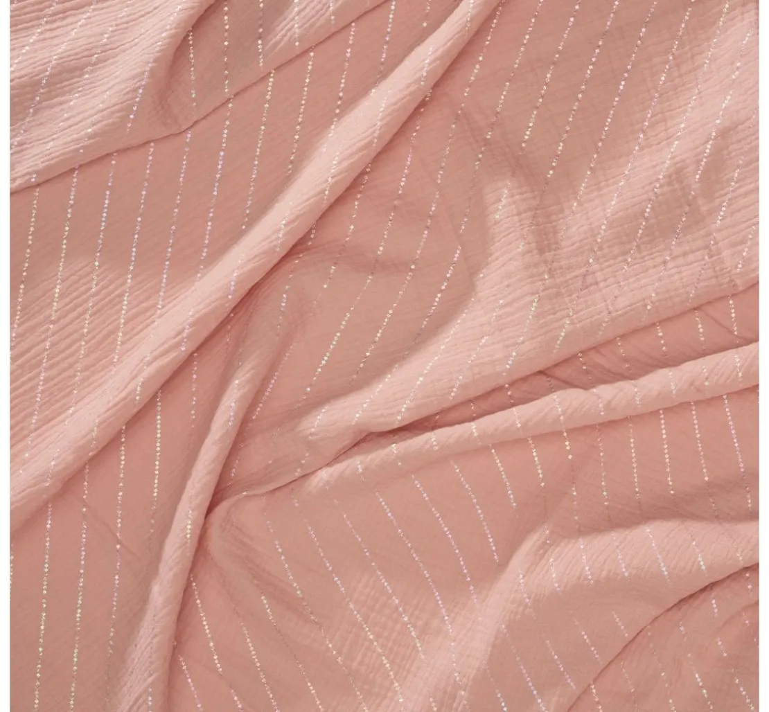 Du suchst nach einem Stoff, der deine Nähprojekte zu etwas Besonderem macht? Dann ist der Krinkel-Musselin Baumwoll-Stoff mit Hot-Foil Effekt „Streifen“ genau das Richtige für dich! Der feine Streifen-Effekt mit Hot-Foil Veredelung verleiht deinen Kreationen einen besonderen Look. Der Stoff ist aus 100 % Baumwolle gefertigt und überzeugt durch seine Faltenoptik – daher auch der Name. Die Streifen liegen ca. 2 cm auseinander und haben eine Breite von ca. 2 mm.