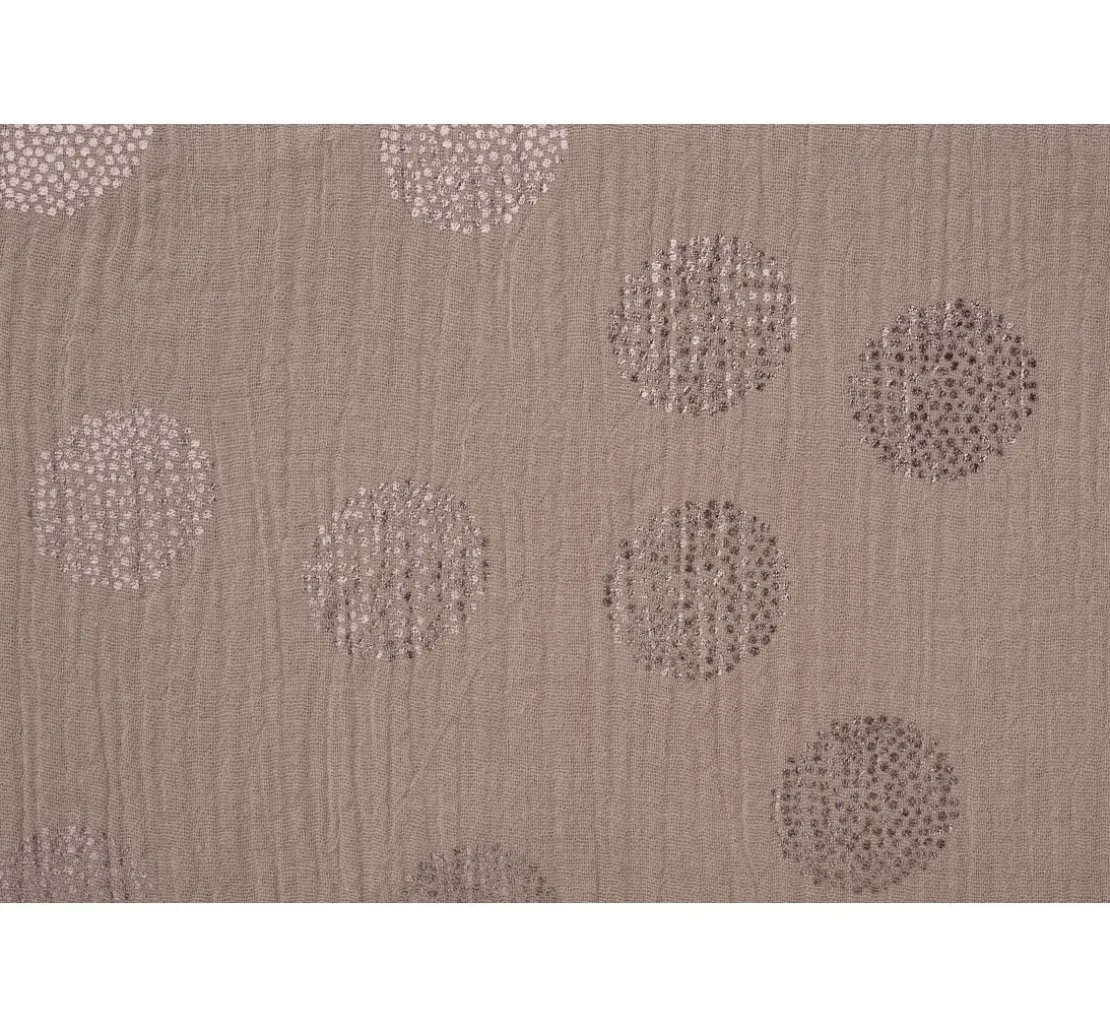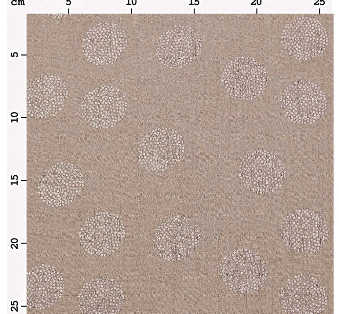 Dieser tolle Krinkel-Musselin Baumwoll-Stoff mit Metallic-Effekt „Sakura Blossom Taupe“ hat eine Breite von 130 cm und ein Stoffgewicht von 130 g/m². Die Meterware ist aus 100 % Baumwolle und die Motivgröße beträgt ca. 3,7 cm. Der Baumwollstoff ist waschbar bei 30 °C Feinwäsche. Krinkel-Musselin entspricht in der Grundware und seinen Eigenschaften dem glatten Musselin und unterscheidet sich nur durch seine leichte Knitteroptik, dem Krinkel-Look. Ein leichter Stoff, der sich mit jeder handelsüblichen Nähmaschine verarbeiten lässt.