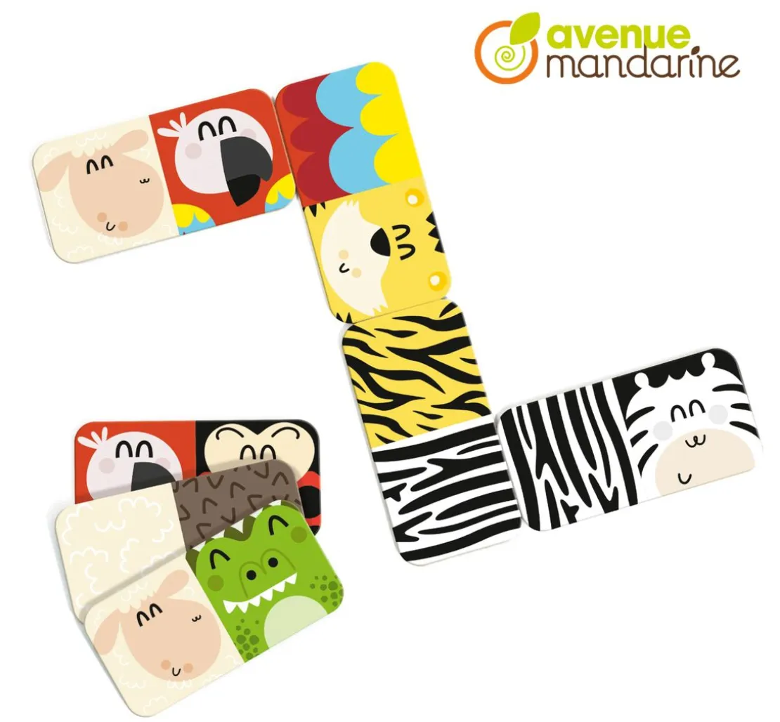 Mit diesem Avenue Mandarine Lernspiel Domino „Tiere und Texturen“ entdecken die Kinder die verschiedenen Tiere, Felle, Muster und Farben. Es sind 28 Dominosteine mit einer Größe von ca. 11 x 5,5 cm aus stabilem Karton sowie eine Spielanleitung für 2 – 4 Spieler enthalten.