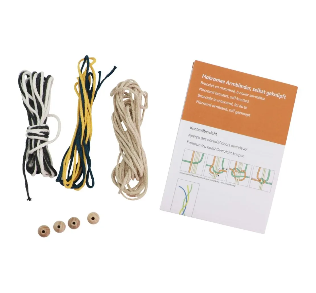 Du suchst nach einem trendigen Accessoire, das du ganz nach deinen Wünschen gestalten kannst? Dann ist das Makramee-Set „Armbänder“ genau das Richtige für dich! Mit diesem Kreativ-Set kannst du ganz einfach 3 stylische Flechtarmbänder herstellen. Dank der beiliegenden Knüpfanleitung kannst du deine Armbänder rasch umsetzen und mit den verschiedenen Farben und Holzperlen dein ganz persönliches Unikat kreieren. Dank des größenverstellbaren Schiebeverschlusses passen die Armbänder an jedes Handgelenk. Ob als Freundschaftsarmbänder oder als modisches Accessoire, mit dem Makramee-Set kannst du deiner Kreativität freien Lauf lassen.
