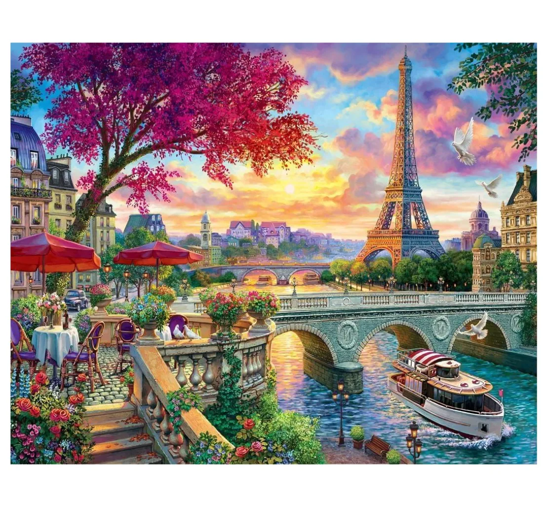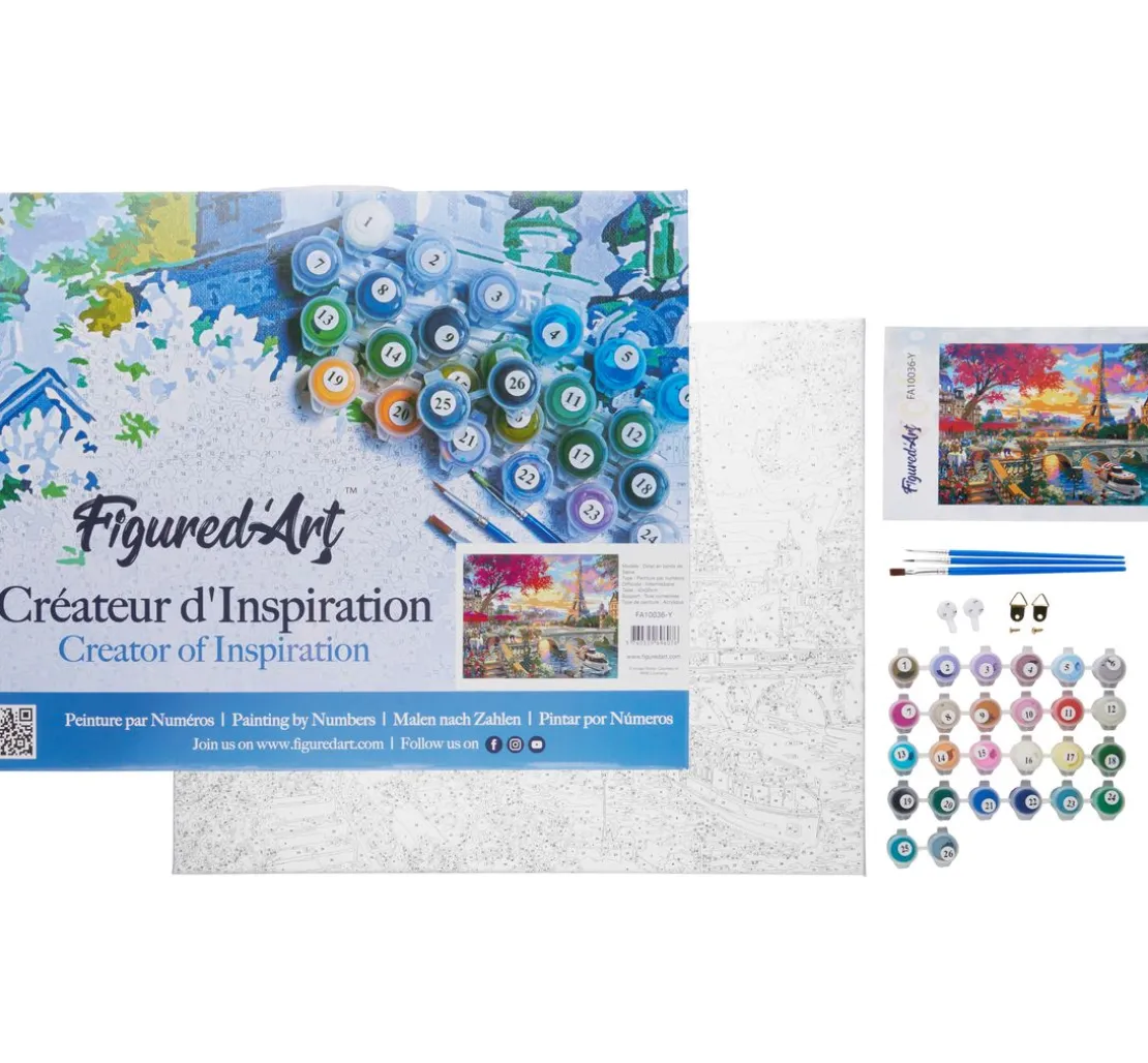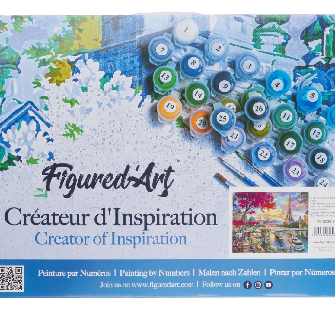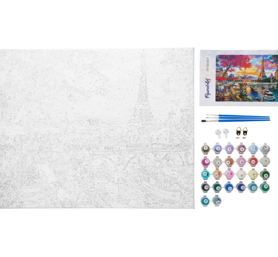Paris, die Stadt der Liebe! Gestalten Sie mit Malen nach Zahlen „Abendessen an der Seine“ ein detailreiches Kunstwerk mit einem tollen Motiv aus Paris mit Blick auf den Eiffelturm. Der Keilrahmen hat eine Größe von ca. 40 x 50 cm und ist mit nummerierten Flächen bedruckt, die mit den entsprechenden Farben ausgemalt werden müssen. Jeder Nummer ist eine Farbe zugeordnet, sodass genau ersichtlich wird, wohin welcher Farbton gehört.