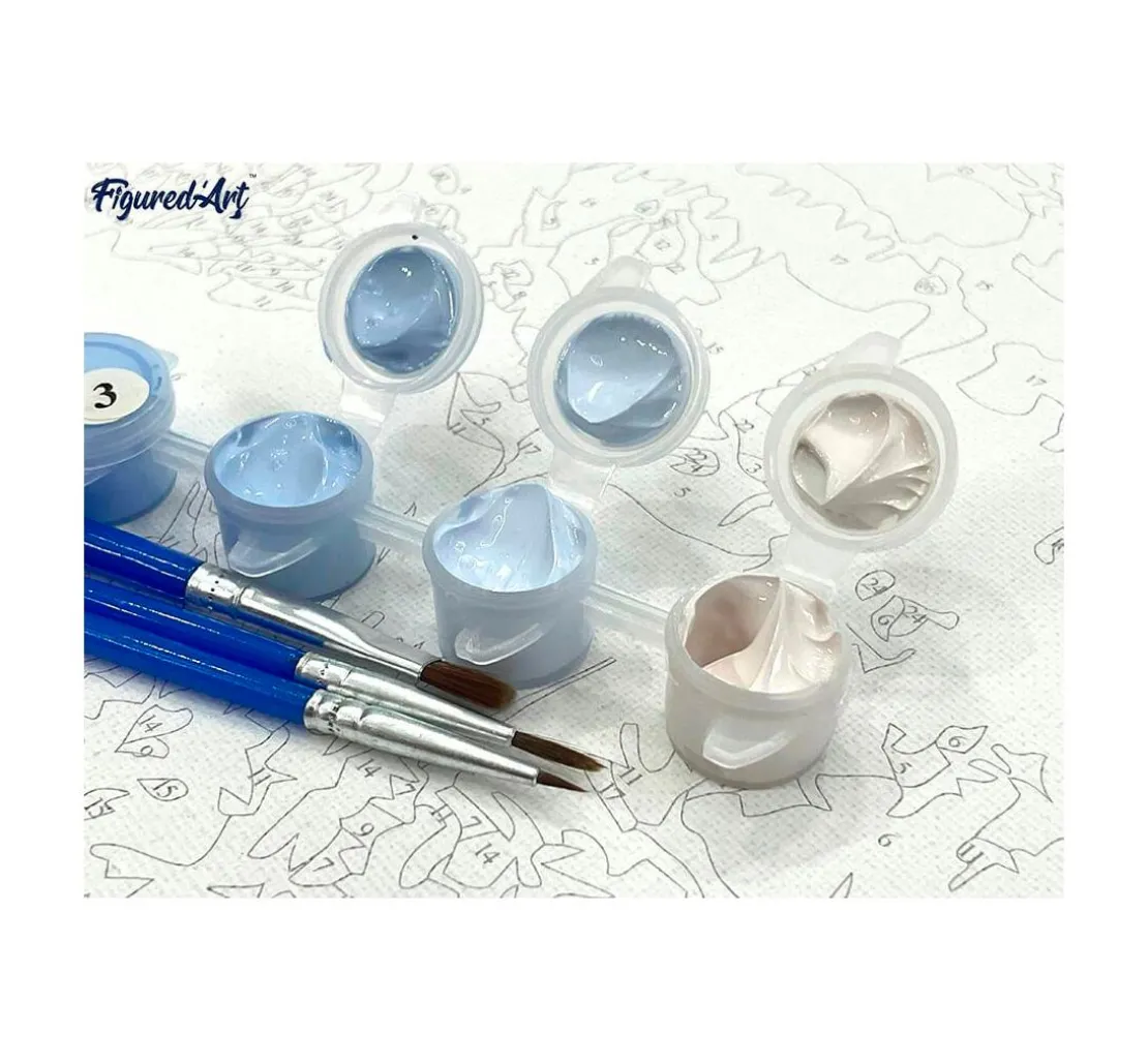 Es kann direkt losgehen: Einfach ein Glas Wasser und Pinsel bereitstellen und beginnend mit der größten Fläche Stück für Stück das Kunstwerk fertigstellen. Farbe für Farbe und Fläche für Fläche wird das detailverliebte und filigrane Motiv vollendet. Die kräftigen Farben sorgen für hübsche Hingucker. Um ein Austrocknen der Farben nach dem Gebrauch zu vermeiden, diese wieder gut verschließen.