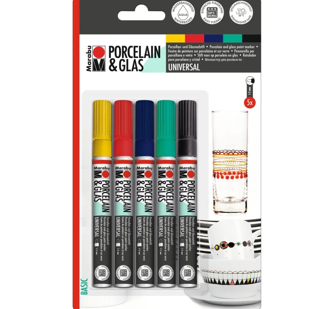 Marabu Porcelain & Glas Painter 5er-Set ideal zum Bemalen von Glas, Porzellan uvm.