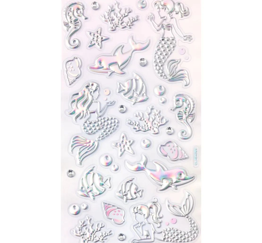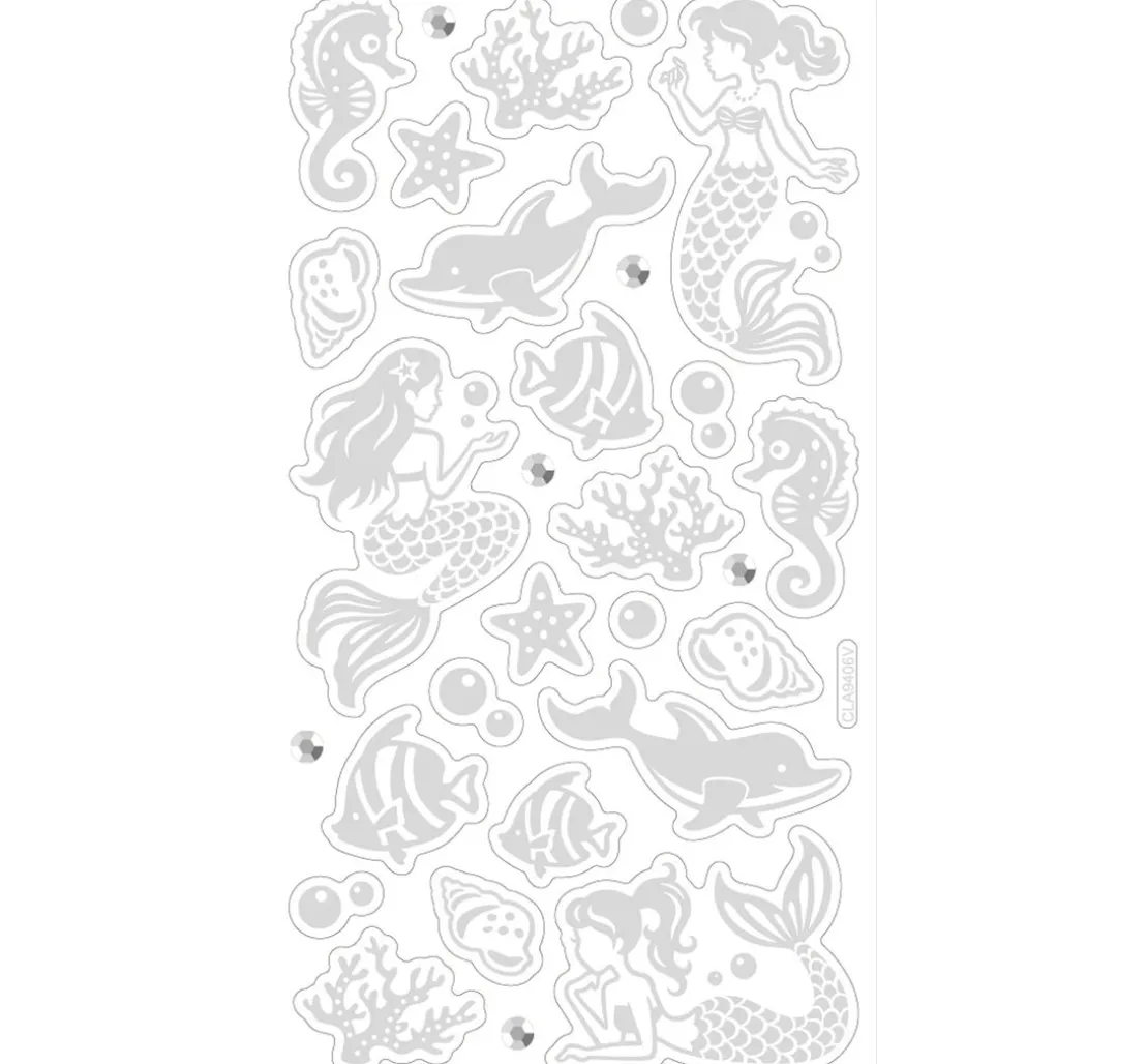Mit diesen hochwertigen Stickern bringen Sie alles zum Glänzen! Die Motive sind auf einer transparenten Folie in Metallic-Silber aufgebracht und schimmern je nach Lichteinfall wie ein Hologramm. Das Motiv ist etwas erhöht und sieht dadurch sehr edel aus. Mit den Motiven wie beispielsweise Meerjungfrau, Delphin, Koralle und Seestern lassen sich hochwertige Dekorationen in Scrapbook-Alben, Grußkarten oder Bastelarbeiten zaubern.