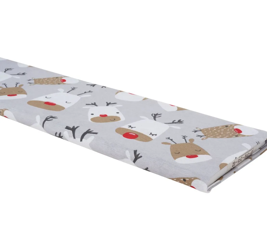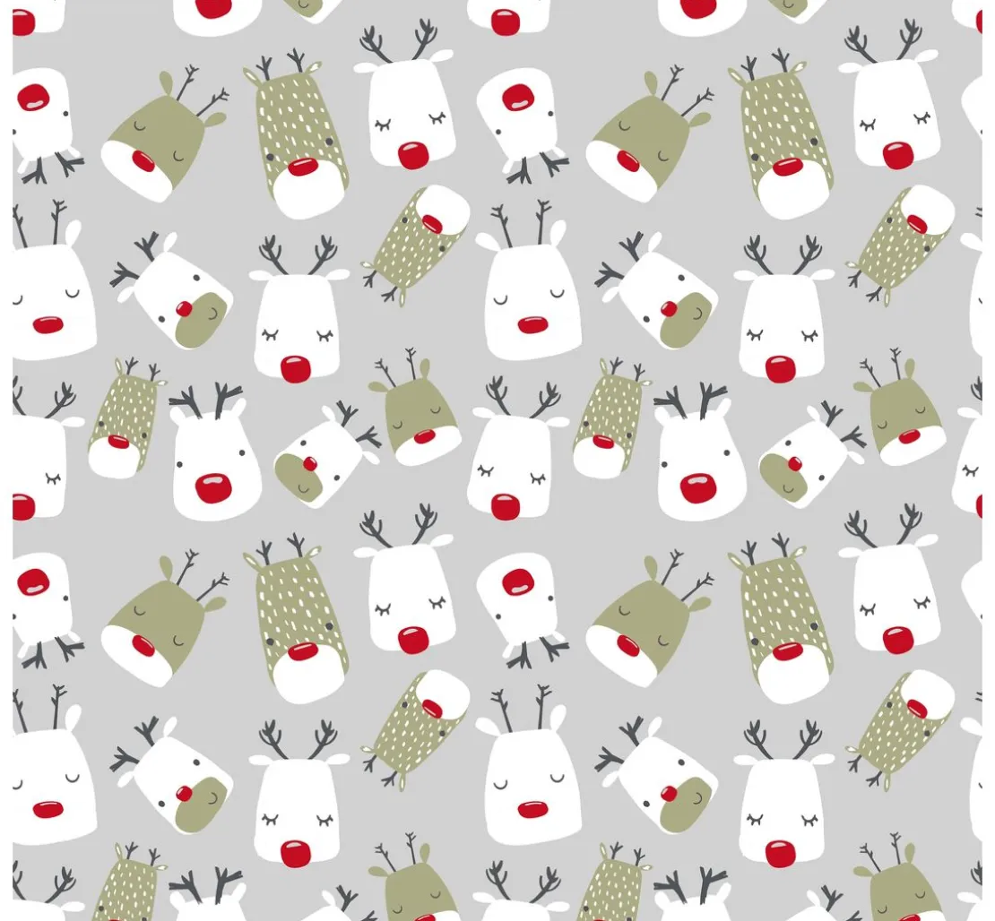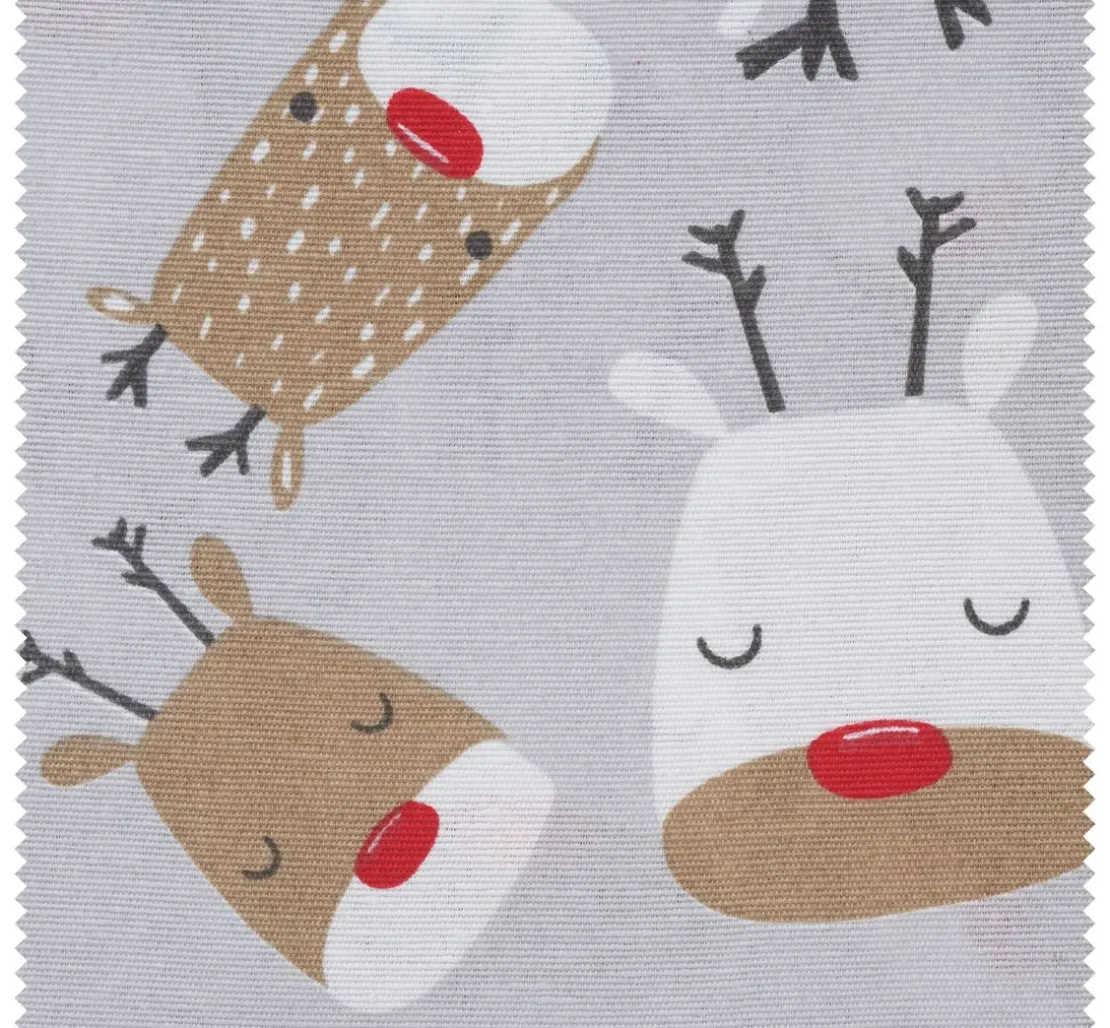Der wundervolle Motiv-Stoff Leinenoptik „Red Nose Rudi“ mit einer Breite von ca. 140 cm ist eine Meterware aus 55 % Baumwolle und 45 % Polyester. Der Stoff ist waschbar bei 30 °C Feinwäsche und hat ein Stoffgewicht von ca. 170 g/m². Auf hellem Untergrund sind verschiedene Abbildungen von Red Nose Rudi.