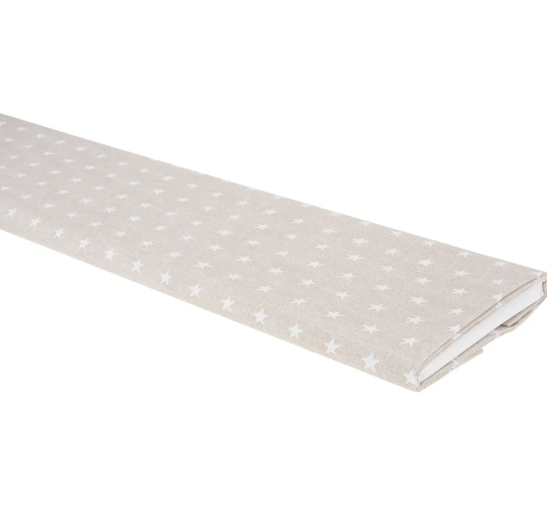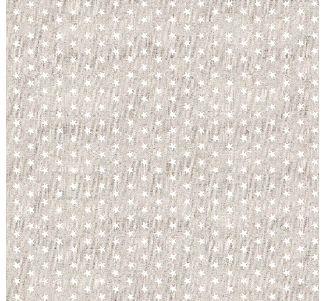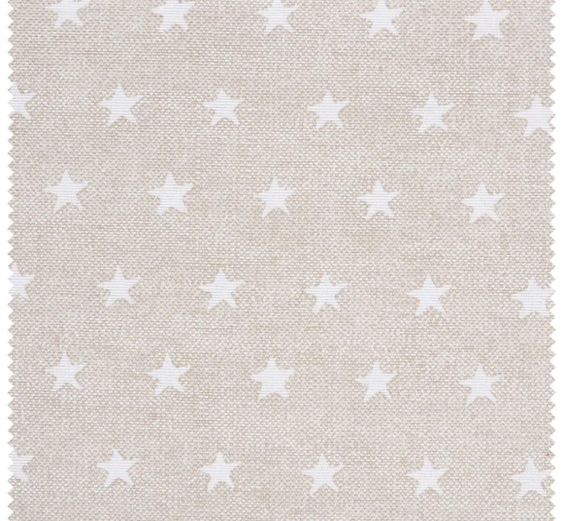 Der schöne Motiv-Stoff Leinenoptik „Sterne„ hat eine Breite von ca. 140 cm. Mit 175 g/m² ist diese Meterware ein mittelschwerer Stoff, der angenehm zu verarbeiten ist. Das Material ist aus 50 % Baumwolle und 50 % Polyester. Der Stoff ist Beige und bedruckt mit Sternen.
