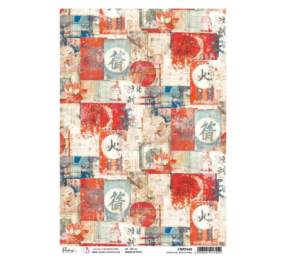 Gestalte mit der Motiv-Strohseide „Land of the Rising Sun – Reflections“ einzigartige Kunstwerke. Die Strohseide ist bedruckt mit Schriftzeichen, Blüten und Symbolen in einer tollen Farbkombination und passt perfekt zu den anderen Artikeln aus der Kollektion „Land of the Rising Sun“. Mit einem Papiergewicht von 28 g/m² und einem Format von DIN A4 ist die Strohseide besonders leicht und handlich. Die Motiv-Strohseide ist einseitig bedruckt, auf der Rückseite Weiß und besonders reiß- und wasserfest. Sie ist vielseitig einsetzbar und eignet sich perfekt für die Gestaltung mit der Servietten- und Decoupage-Technik.