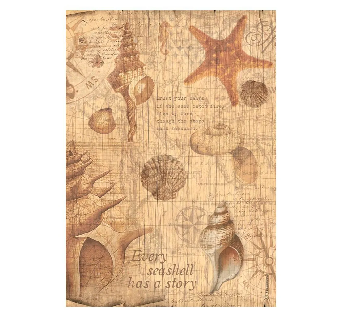 Tauche ein in die Welt von Sonne, Strand und Meer mit der Motiv-Strohseide „Sea Land – Muscheln“ aus der Kollektion Sea Land von Stamperia. Das maritim gestaltete Papier zeigt verschiedene Muscheln auf einem Hintergrund mit maritimen Zeichen und entführt dich direkt an den Strand. Mit einem Gewicht von 28.0 g/m² und dem DIN Format A4 eignet sich die Strohseide perfekt für deine Bastelprojekte.