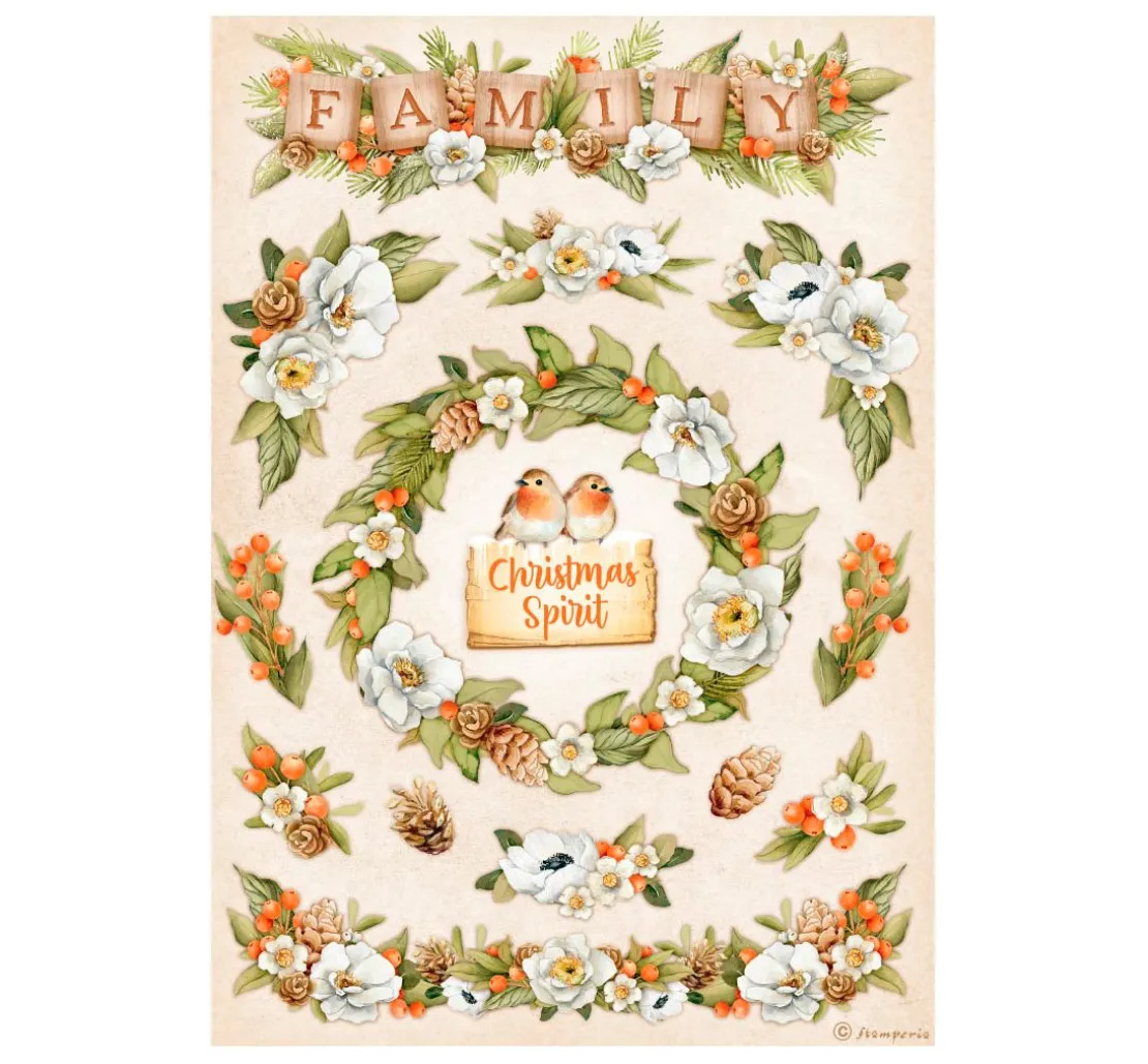 Du möchtest deine Dekorationen mit einem besonderen Motiv aufwerten? Dann ist die Motiv-Strohseide „Winter Valley – Christmas Spirit“ genau das Richtige für dich. Das Motiv der Kollektion Winter Valley besteht aus einem Kranz mit Beeren, Zapfen und Blüten, weiteren Motiven mit Blättern, Blüten und Zapfen sowie zwei Vögel, die den Schriftzug Christmas Spirit halten sowie einem wundervollen Schriftzug mit Family.