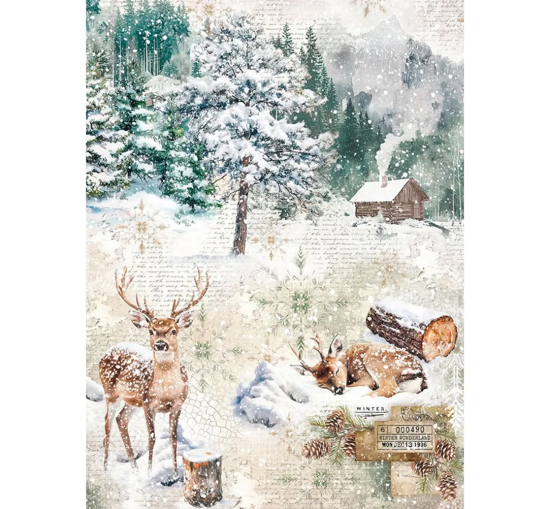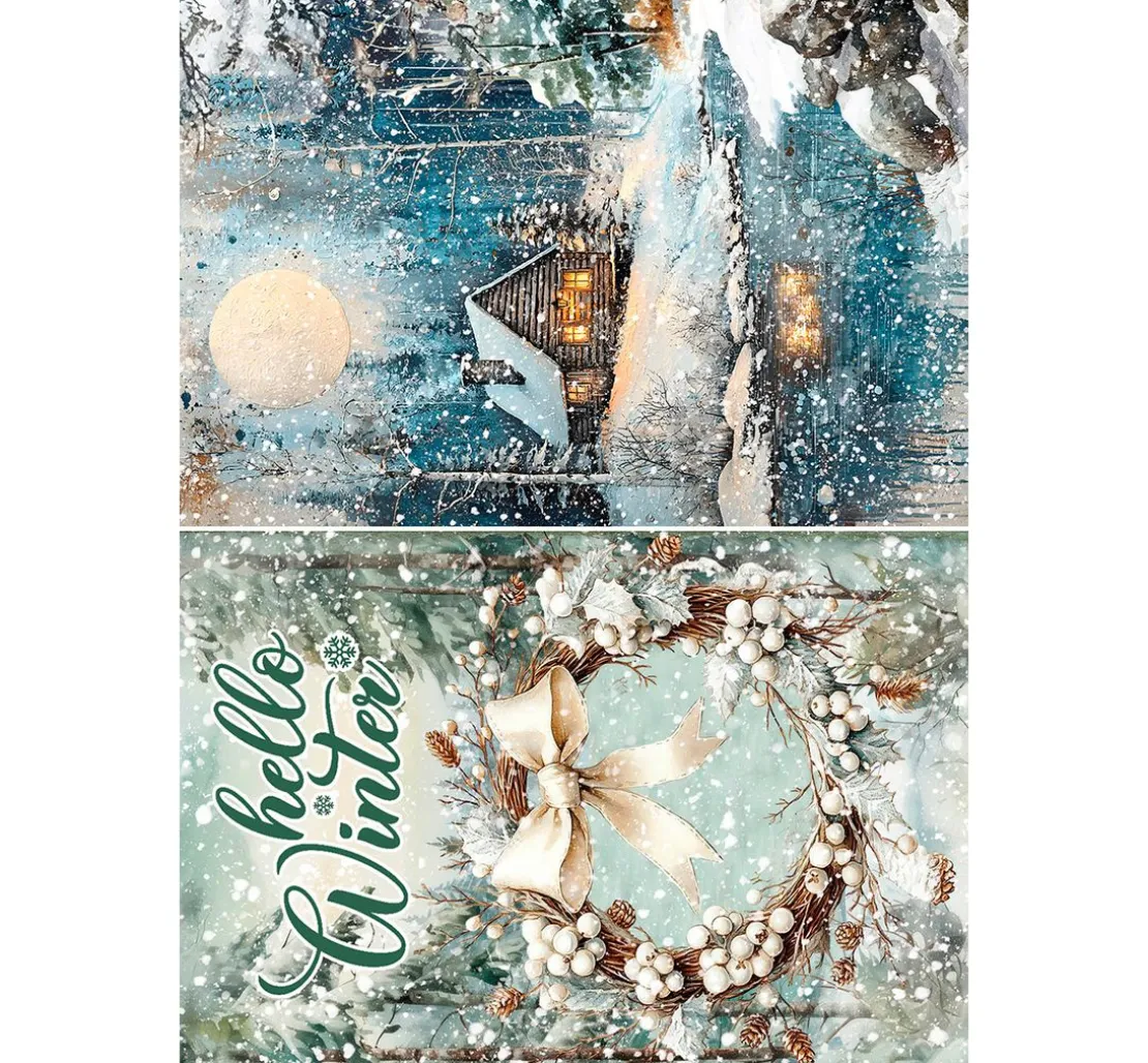 Mit anmutigen Motiven von Tieren auf einer Lichtung, einem behaglichen Holzhaus im verschneiten Wald und zauberhaften Winterkränzen kannst du deine DIY-Projekte in echte Kunstwerke verwandeln. Die Motiv-Strohseide ist aus robustem Naturpapier gefertigt, das sich perfekt für die Servietten- und Decoupage-Technik eignet und auf nahezu allen Oberflächen haftet – von Holz und Metall bis hin zu Glas und Terrakotta.