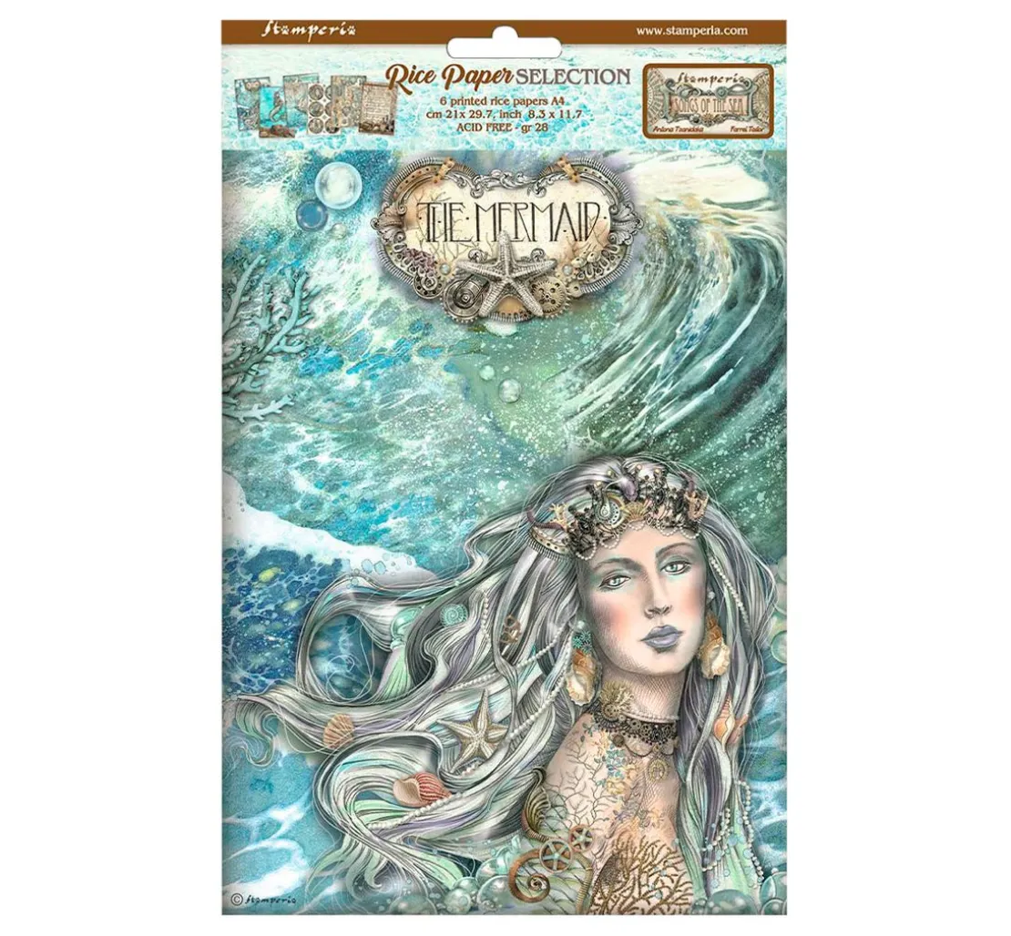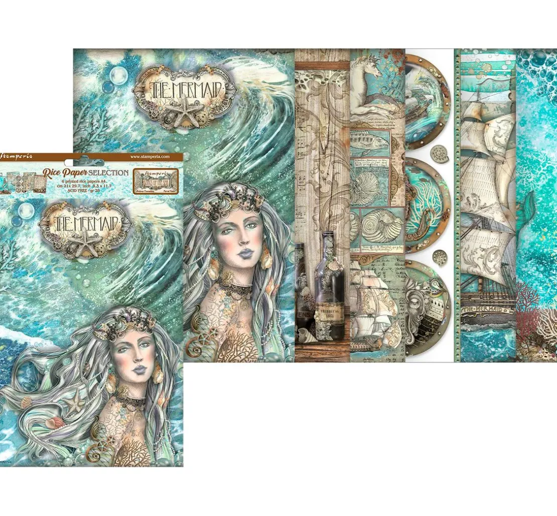 Entdecke das Motiv-Strohseiden Sortiment „Songs of the Sea“ und lass dich von den magischen Motiven verzaubern! Mit dem Set erhältst du 6 unterschiedliche Motive wie Meerjungfrau, Segelschiff und andere Nautik-Motive. Das Naturpapier aus der Kollektion „Songs of the Sea“ ist einzigartig und lässt sich mit der Decoupage-Technik wunderbar gestalten.